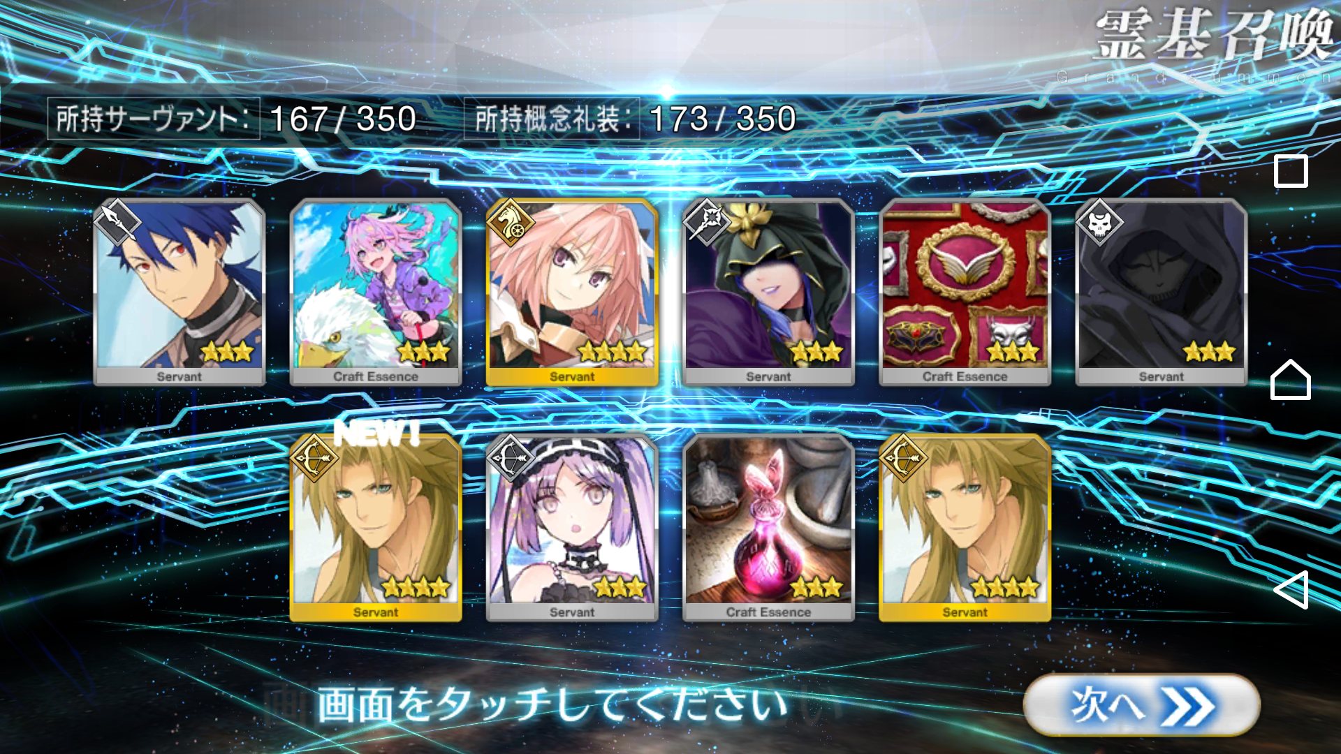 スカディ100連でオジマン1、アストルフォ1、エレナ1、フィン1
