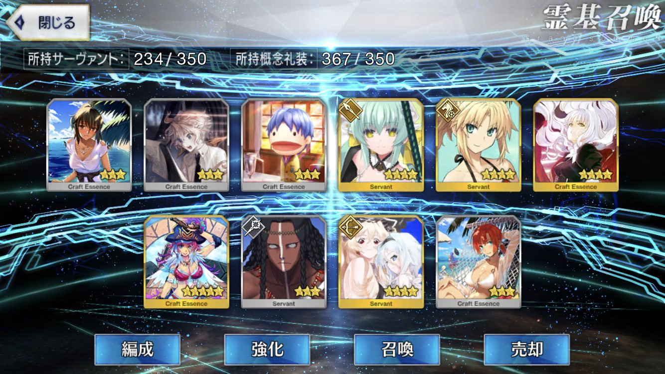 正にあと1枚が命取り、もう星5ピックアップ礼装狙いのガチャは引かない。>>109