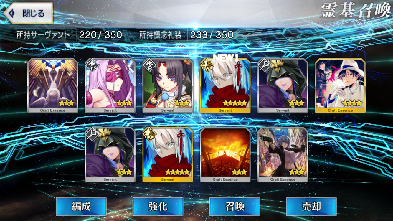 10連回したら、すまないさんが宝具5になったわ。そういえば結局すまないさんが2枚しか出てないな。