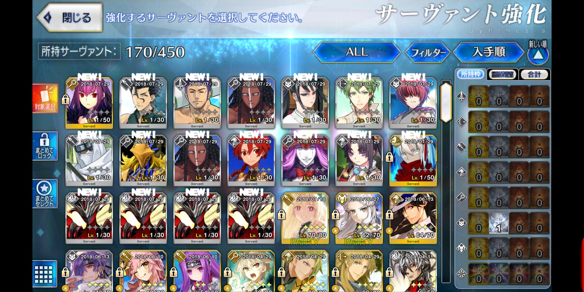 終了間際に挑んでよかった呼符5枚に70連。