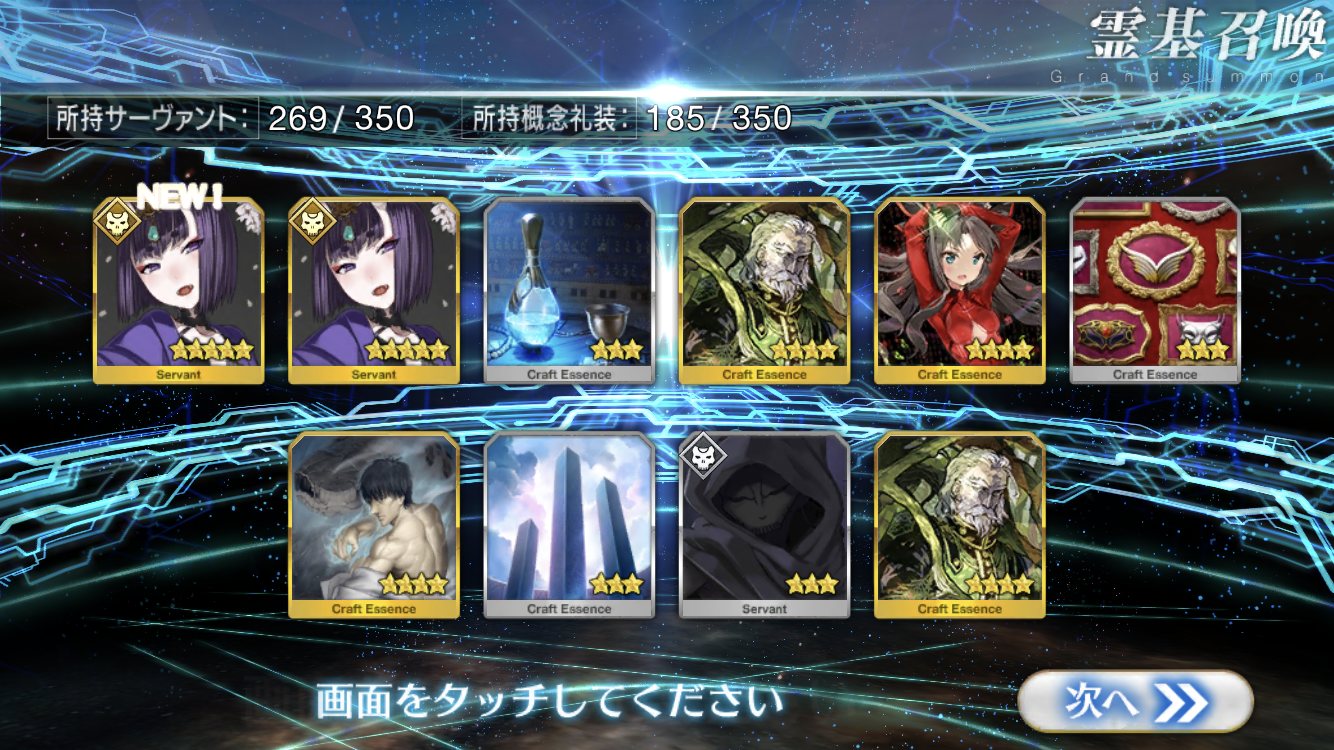 当たりか…?イバラギンが宝具5だから怖くて引けない。どうせ引けてもイバラギンだろうし。