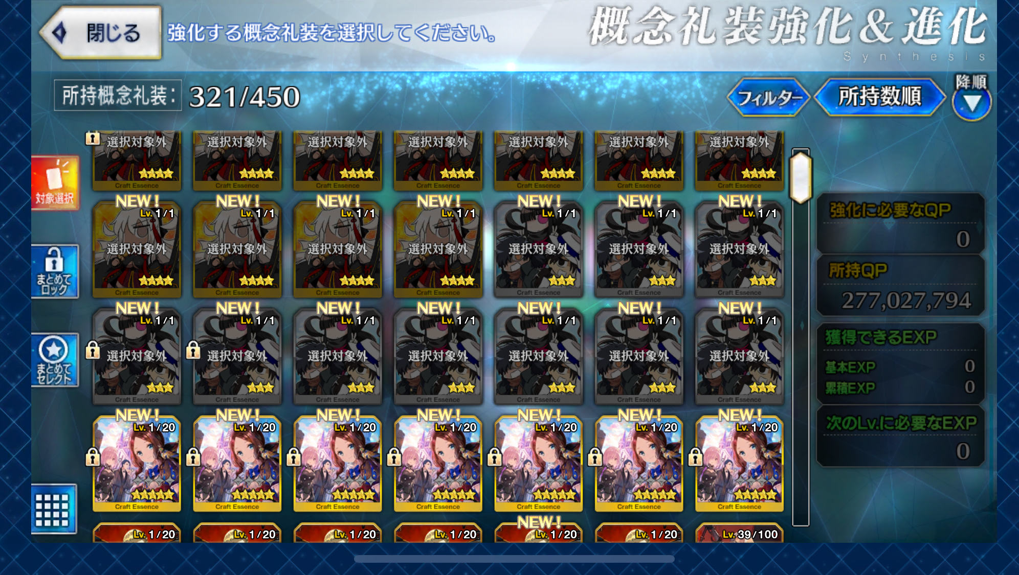 前回は40万だか400万pt(確認してなかった)で、こたつ1アンリ1リヨ3。星3は10枚以上