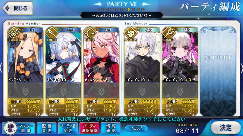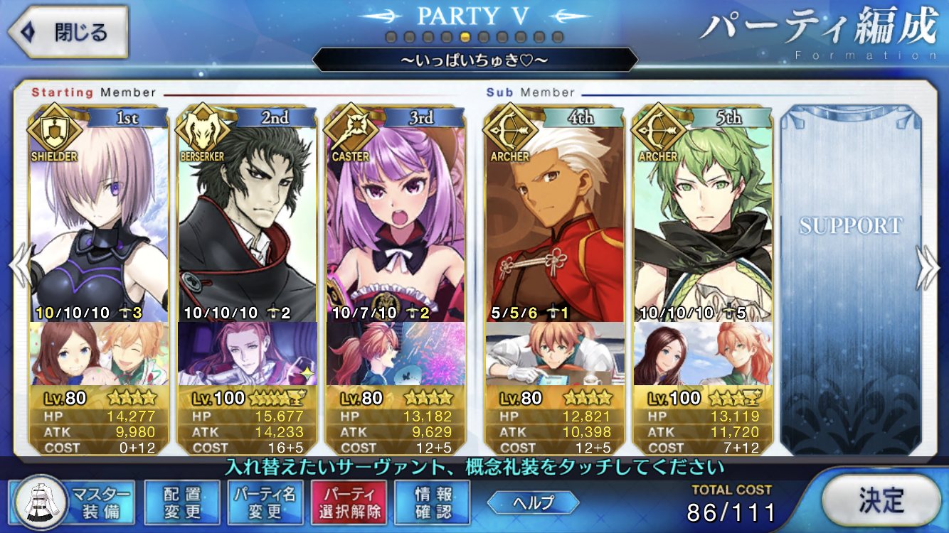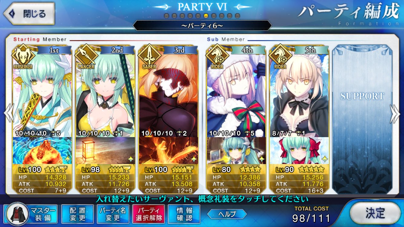 場持ちはオルタがいるからぶっぱなし要員が最良かな。採取決戦で世話になったしその方面で強化待ってる
