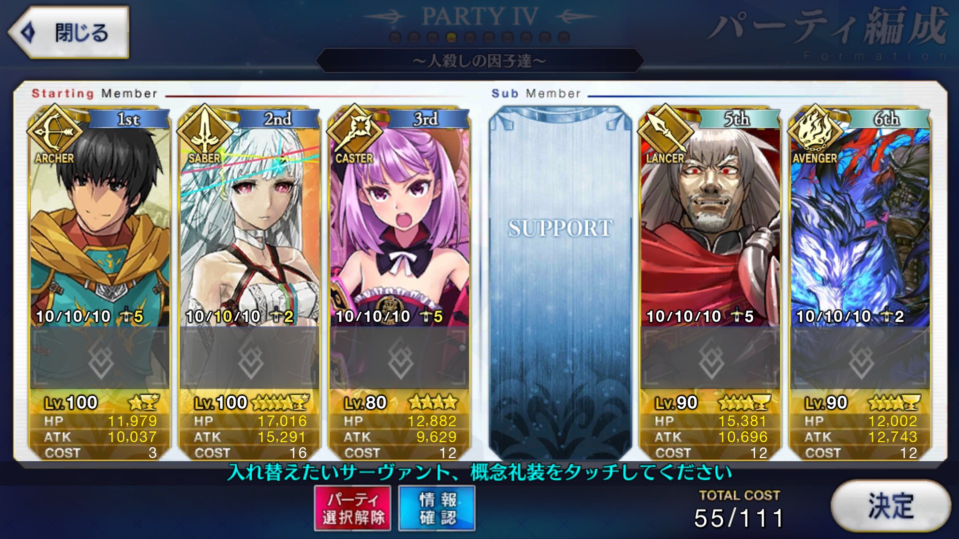 さらに術の星5女性陣と星5アヴェンジャーには嫌われている