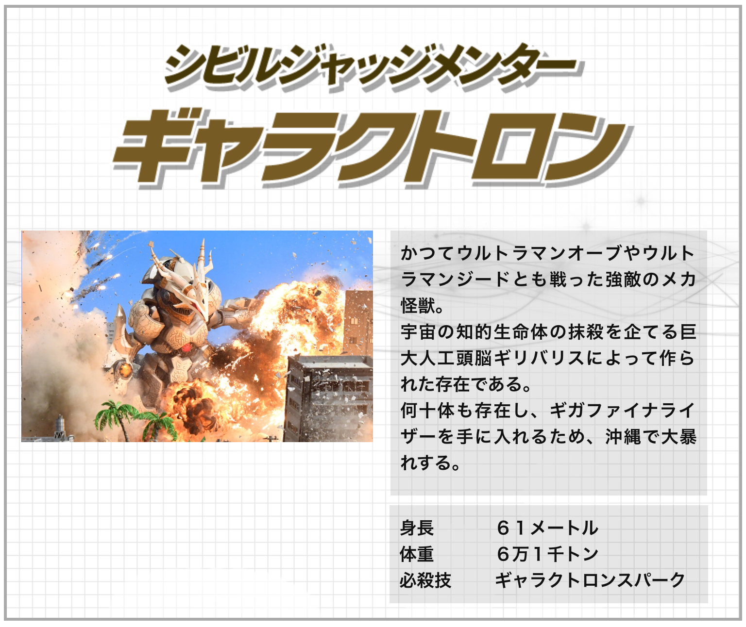 EX(大怪獣):百兆度の炎を全開出力で放って宇宙を滅ぼそうとした。普通に撃っても宇宙滅びるんじゃね?とか言ってはいけない