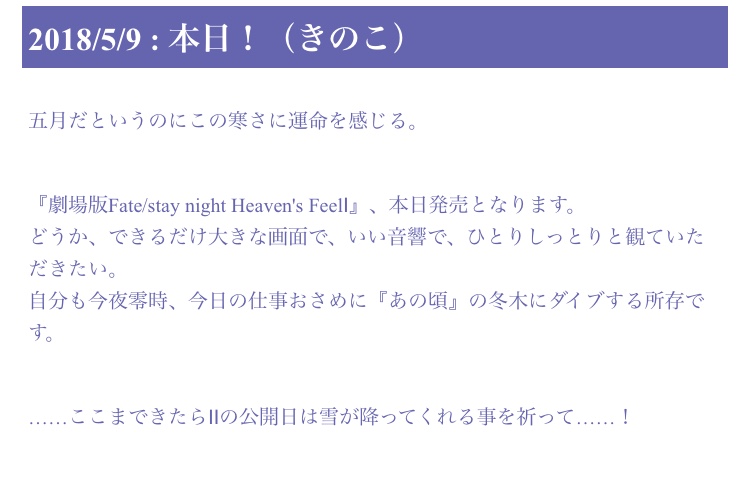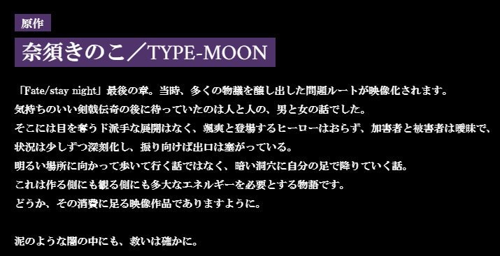 そこまで制作側は考えてない可能性もあるけど気になるとりあえずUFOtableのでかポスカで「須藤監督に何を書くか聞いたらこれしかないと言われたので桜」というくだり、多分ほぼすべてのHFファンが「知ってた」となったはず