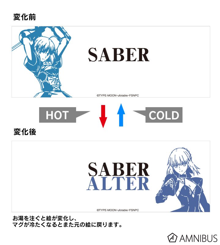 低温時にはセイバー、お湯をそそぐことでセイバーオルタへ変わるデザイン。