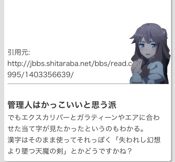 どっちにしても鞘無さそうだし投影魔術は仮に知っても使えないのかな?>>56