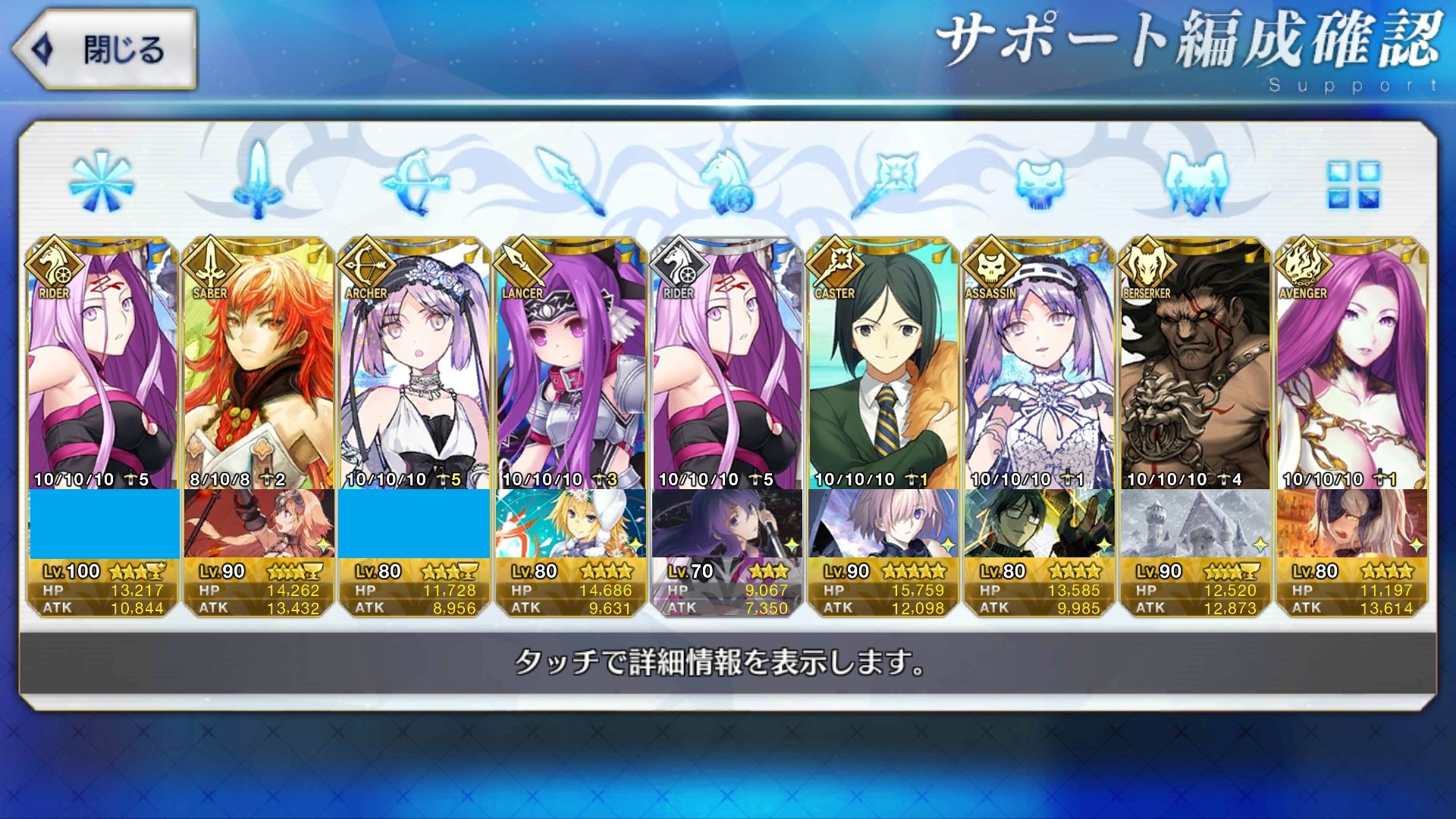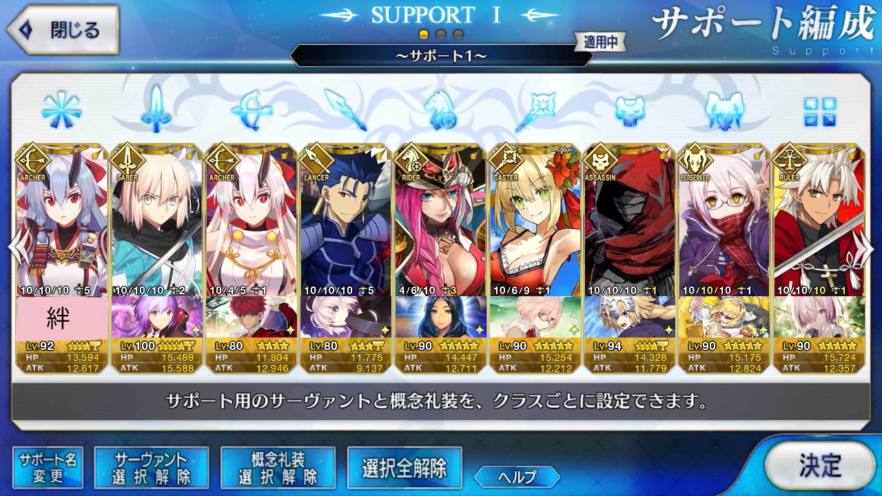 超個人的なオススメだと言わずと知れた単騎で輝く胤舜殿、短期決戦型だけどマスター礼装で回復するとヤバいことになる鷹の目投影からの超高火力エミヤ、神の加護でダメージ通さない上に知らん間にHP全快してたりする宝具がなかなか高火力なダビデらへんもっちーはデフォルトでハイライト無い勢の1人か