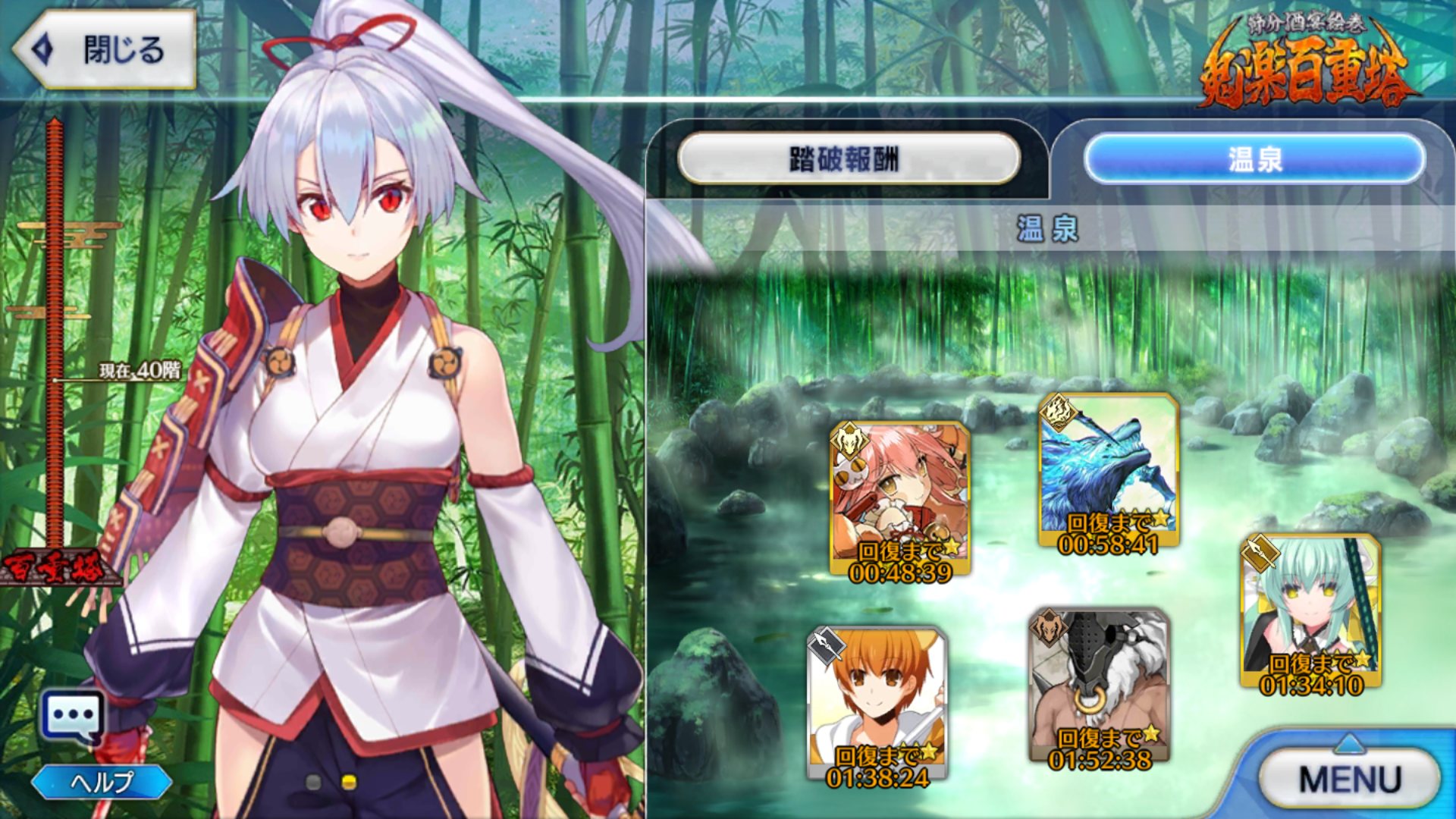 まだ40階だけどちょっと手間取ったんでこっから少し難易度上がりそうかサーヴァントが110騎ぐらいだから、41階で小休止