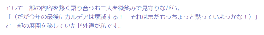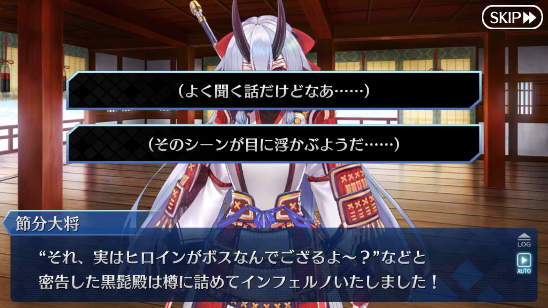 インフェルノさんに聖杯捧げてた友人のメッセージ欄が「節分大将 節分女将 最高」になっててとても微笑ましい