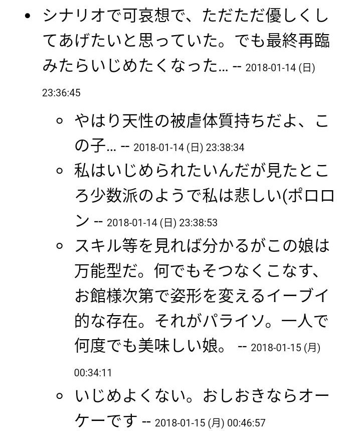 やっぱりこれぐらいで一旦ストップしてる人多いみたいね 早いというか、コンプ勢クラスになると70に手がかかるくらいまで進めると聞いて戦慄そうかァ……薄幸の巫女忍者ちゃんかぁ…お酒には強いってことは最終再臨はそういうことなんだァ…それにしても可愛いな…ほんとに何この娘?前から思ってたけどほんとに爬虫類っぽいとこあるんだ。それにしてもずぼらなだけではって考えも可愛いなぁ…寒い朝に毛布に車って日陰の方にゆっくり這いずって移動するモッチー…良い…とりあえずセリフは全部スクショしたけど足りないなぁ…ゴルゴーンさんにもモッチーにもお友達出来て良かった…モッチーの肉体相応の面とか見れてほんと可愛い。それでも主をちゃんと心配してくれるモッチー忍びかわいい。最後の勘違いムーブはもう…モッチーこんな娘なのね…最高…ずっとゴルゴーンさんとお風呂に入れとくわ…