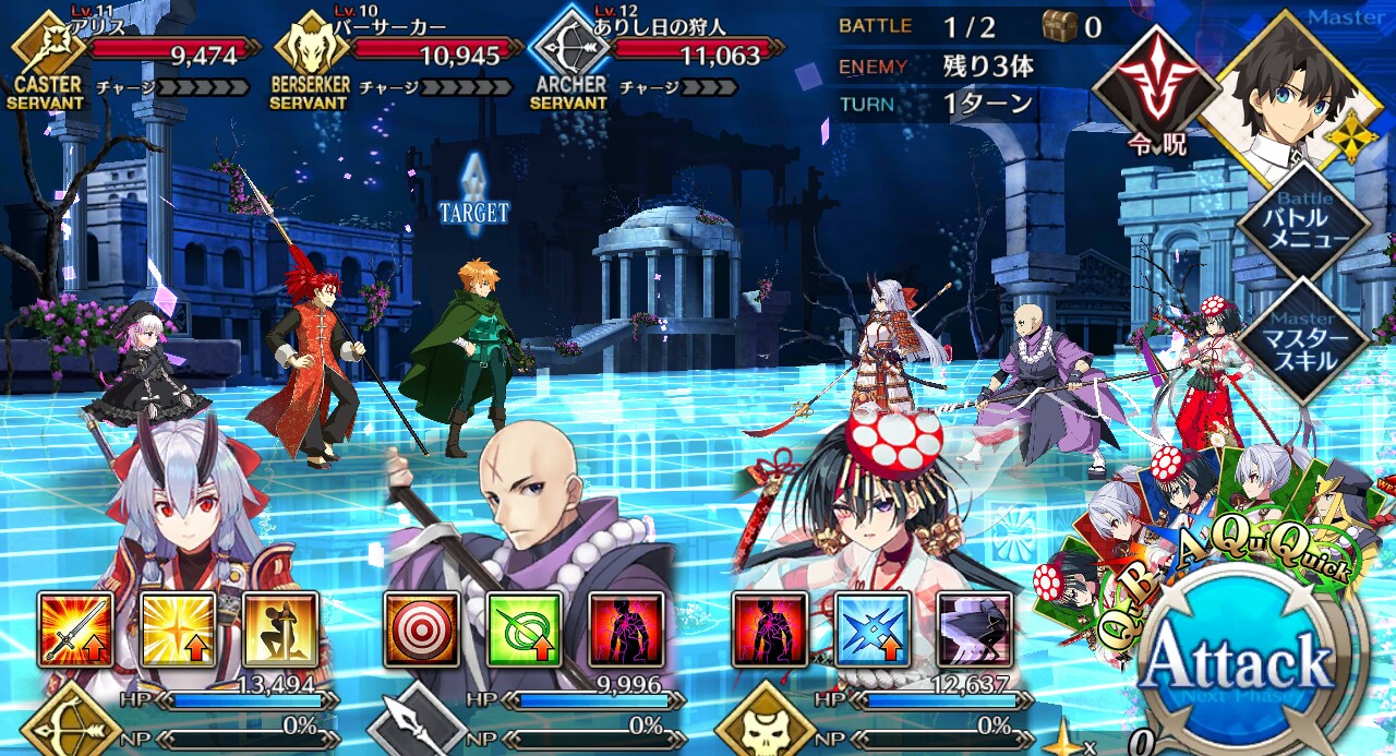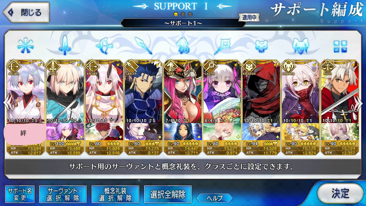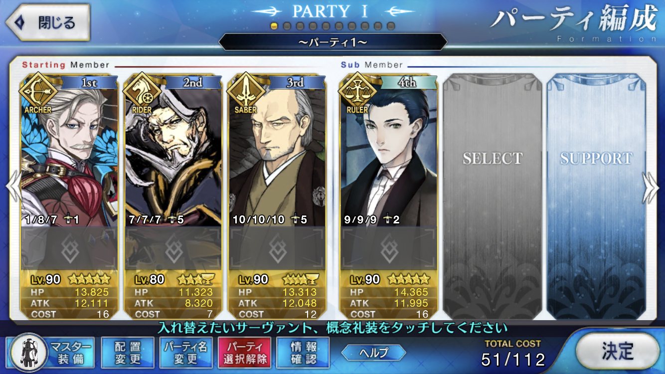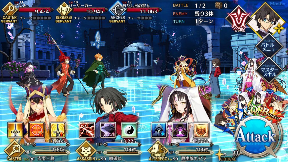 自分は中々面白い編成で行った。え?真名を隠しているだけで右端のサーヴァントは玉藻だよ?>>927