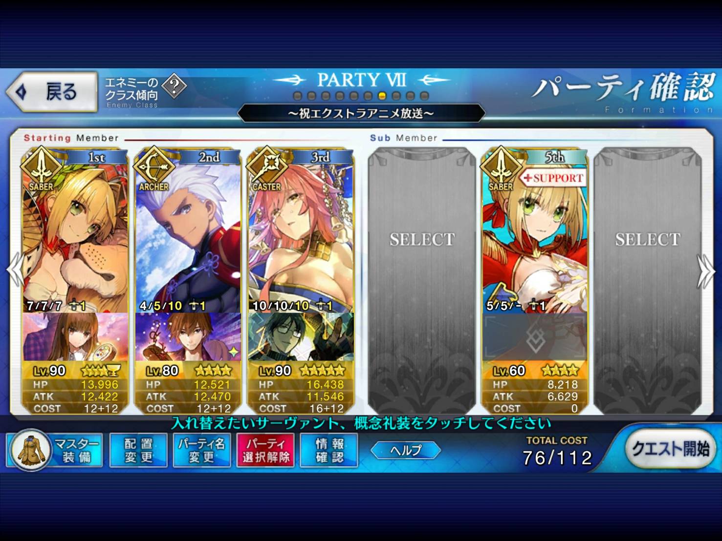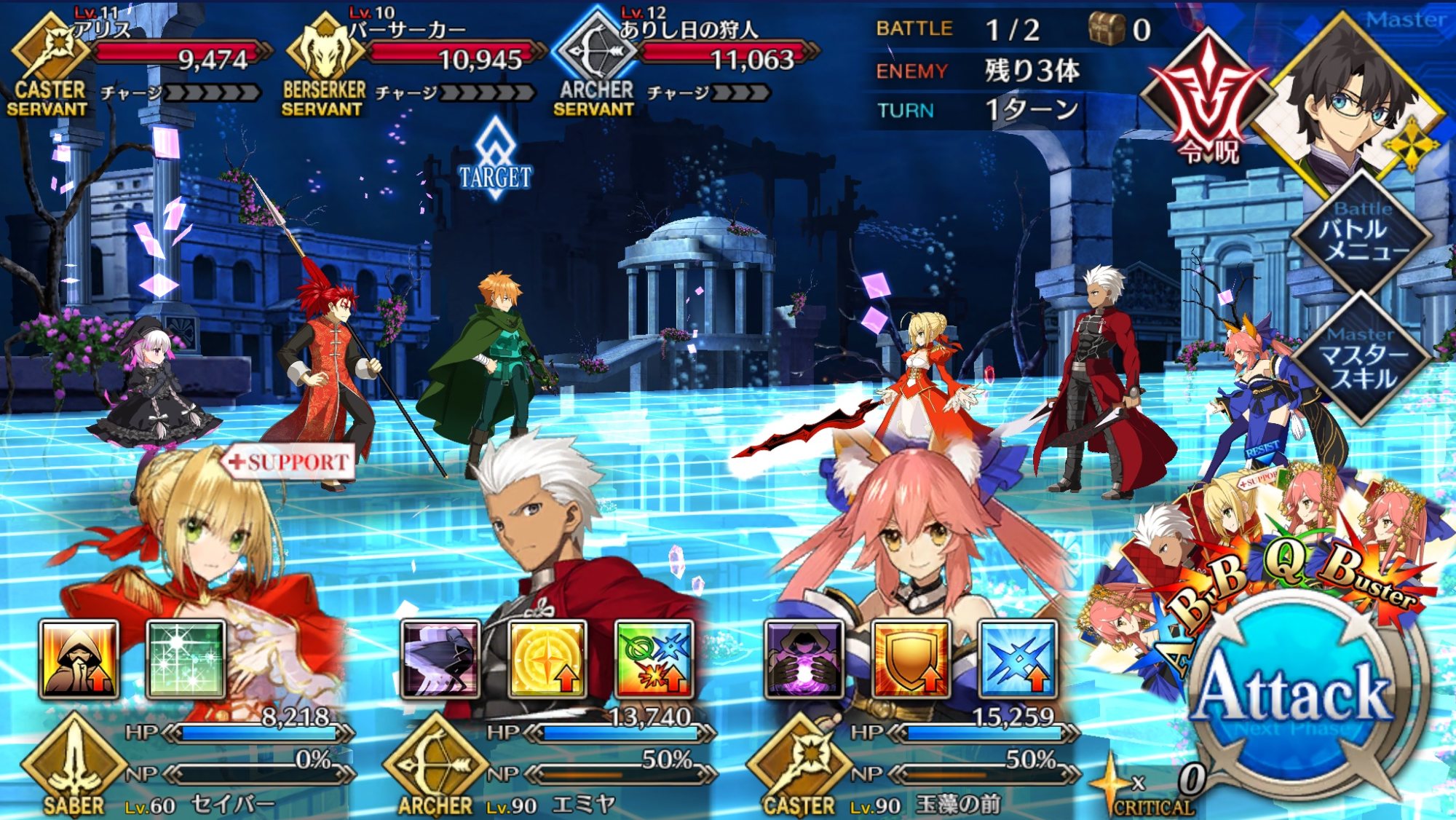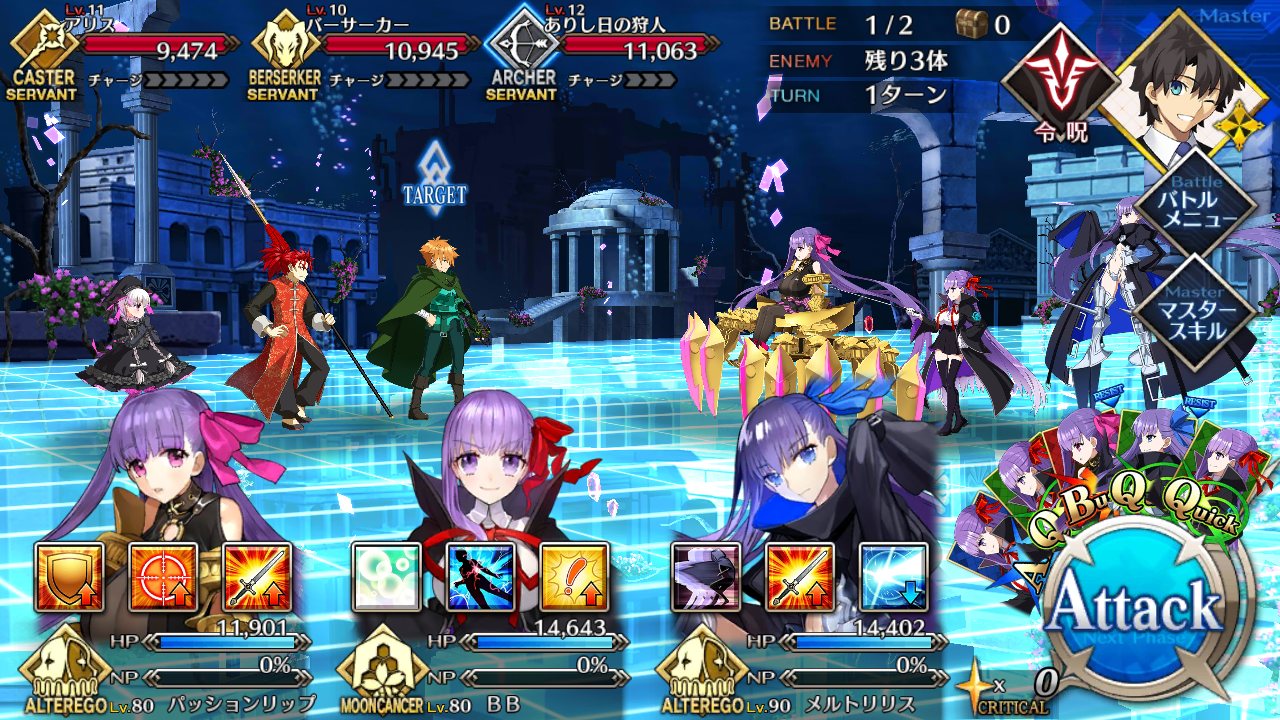 自分は中々面白い編成で行った。え?真名を隠しているだけで右端のサーヴァントは玉藻だよ?>>927