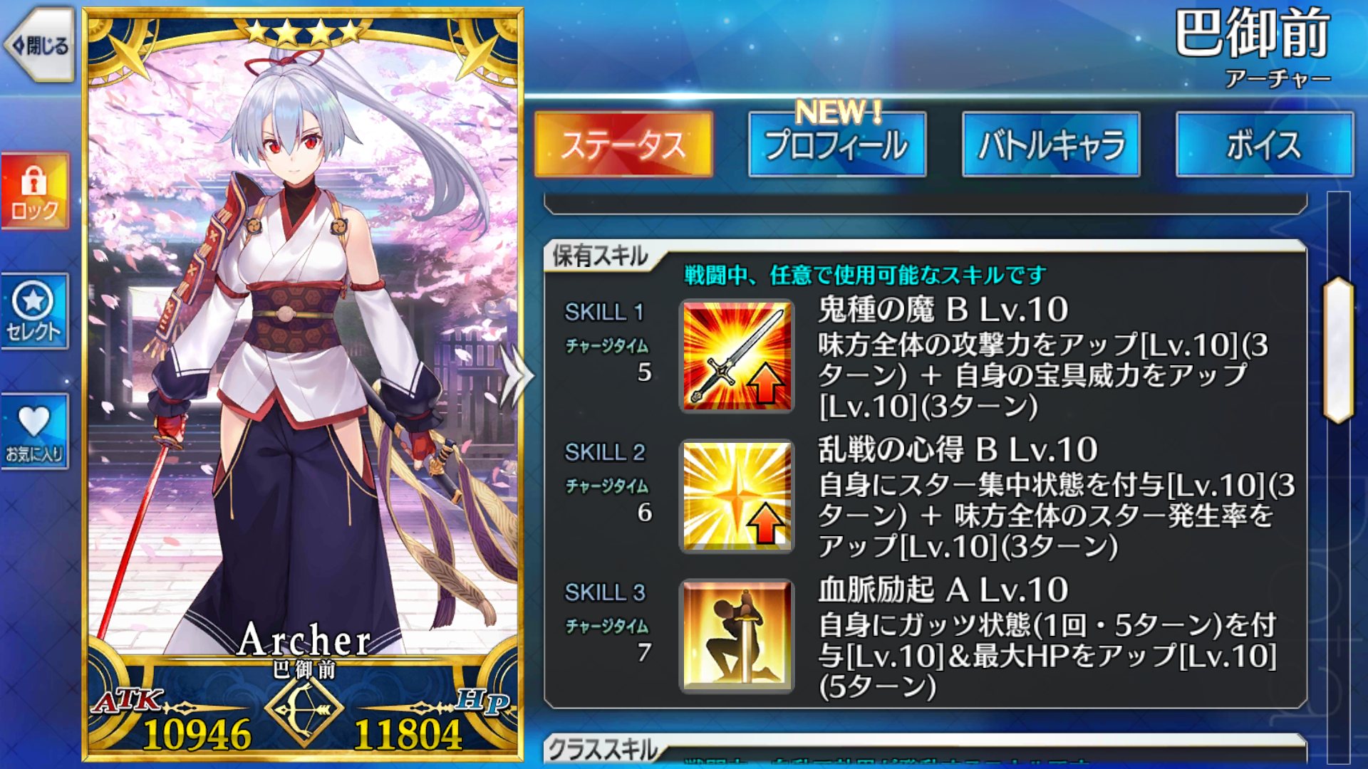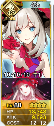 自身の攻撃力 宝具威力 バスター性能大アップ(1ターン) 効果終了時に自身は撤退(デメリット)