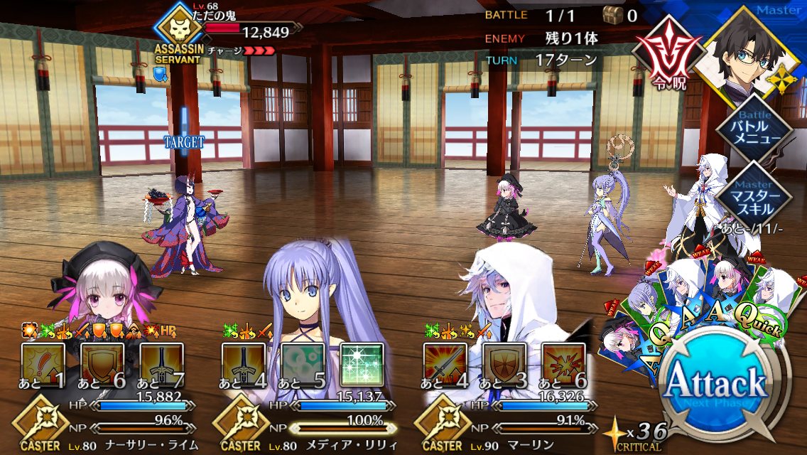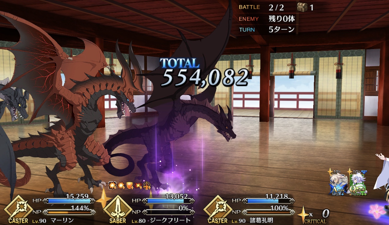 スター集中とクリティカルUPを自前で持ってるのいいよね。欠片やら呪腕ジャックおっきーなどを添えてサポートするとヒット数の少なさも気にならなくなる。呪い強化系は孔明にも恩恵あるよね