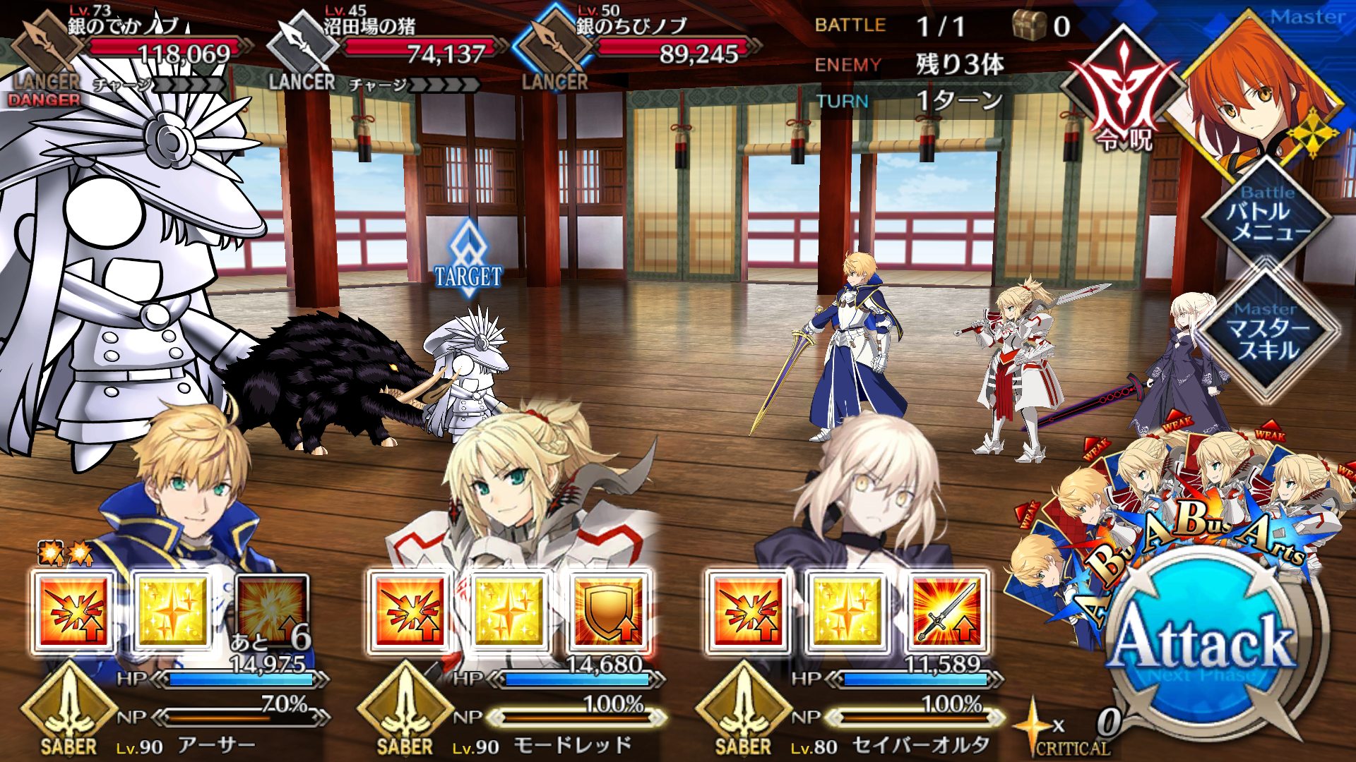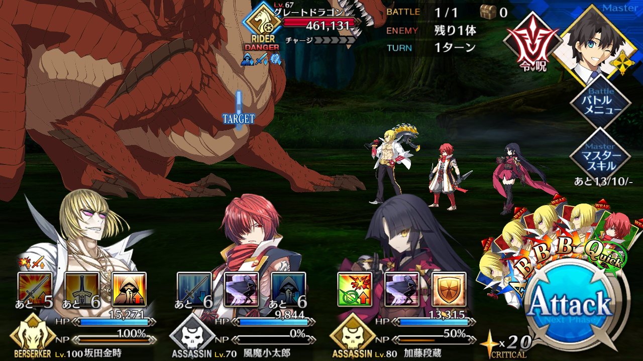 宝具レベルが一人だけ低いのもあってちと辛い