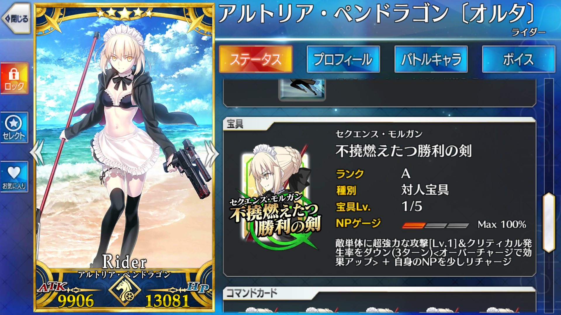一応アルトリアリリィは特典として配布されたサーヴァントだから、そこまでの戦闘力として当初から設定されてはいなかったと思うな。