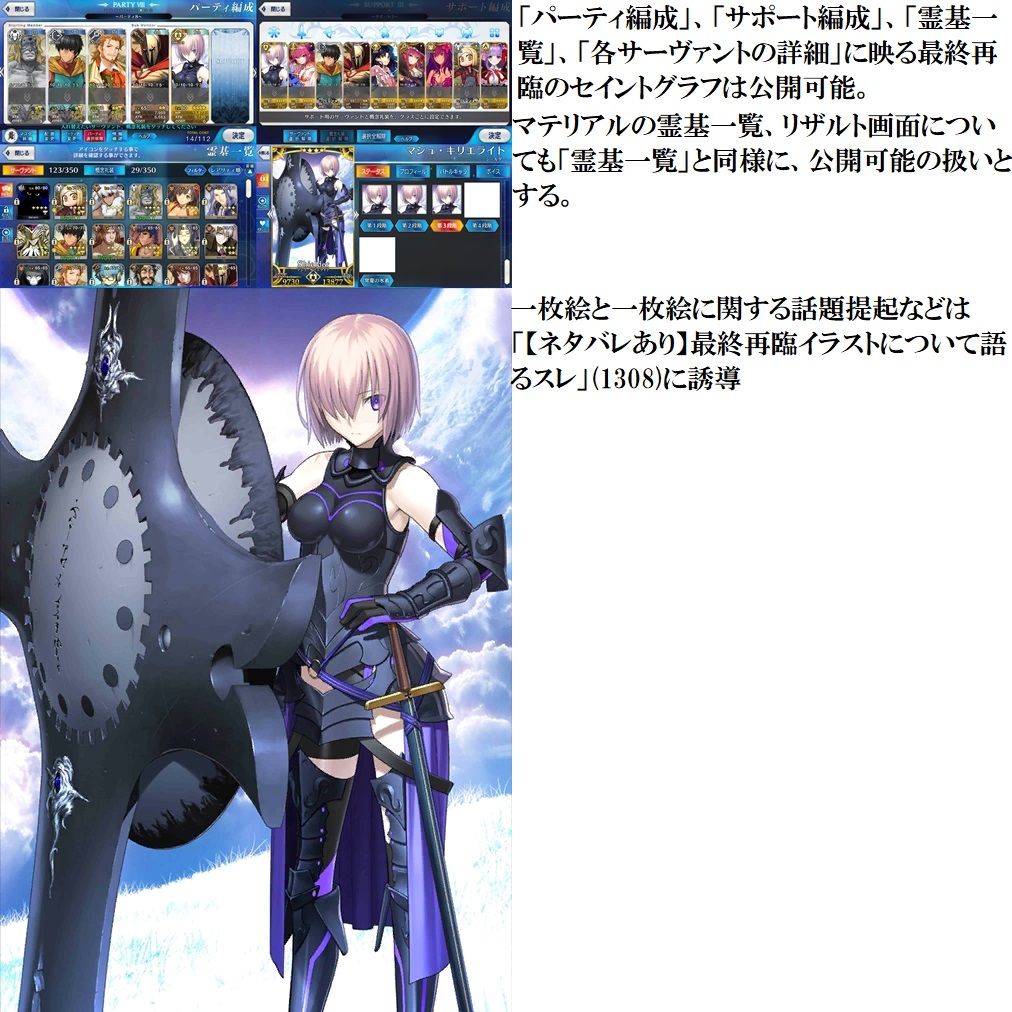 最終再臨イラスト、霊衣開放イラストは実装から2週間は貼らないでください。