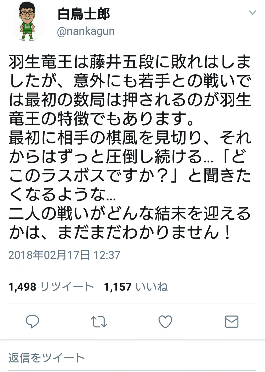 暴走したのも戦死した勇者侮蔑されたのが最後の後押しだし公式戦初対局となった羽生さんvs藤井五段は藤井君に軍配が上がり、その裏でフィギュアの羽生君が連覇を果たしていた