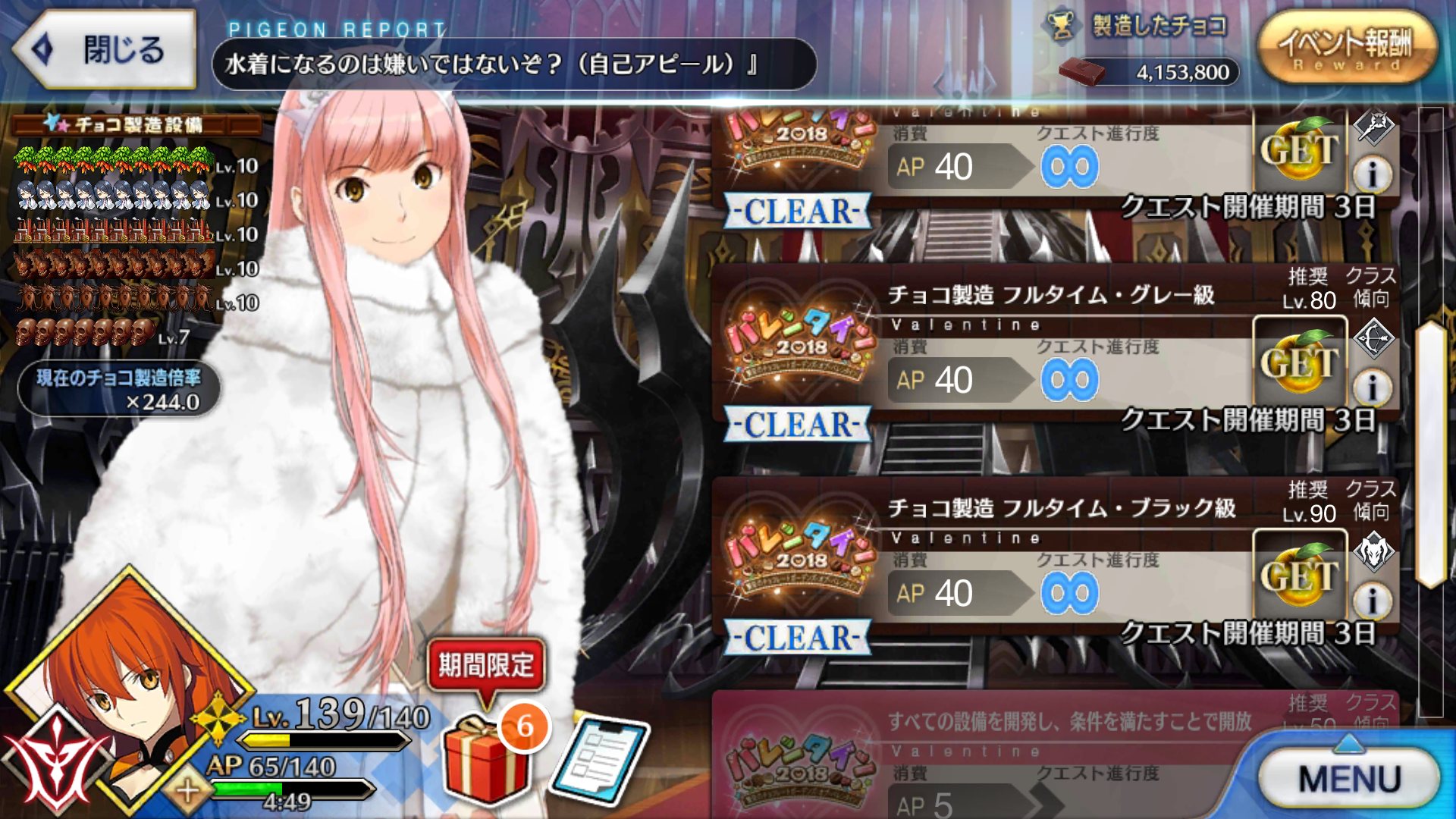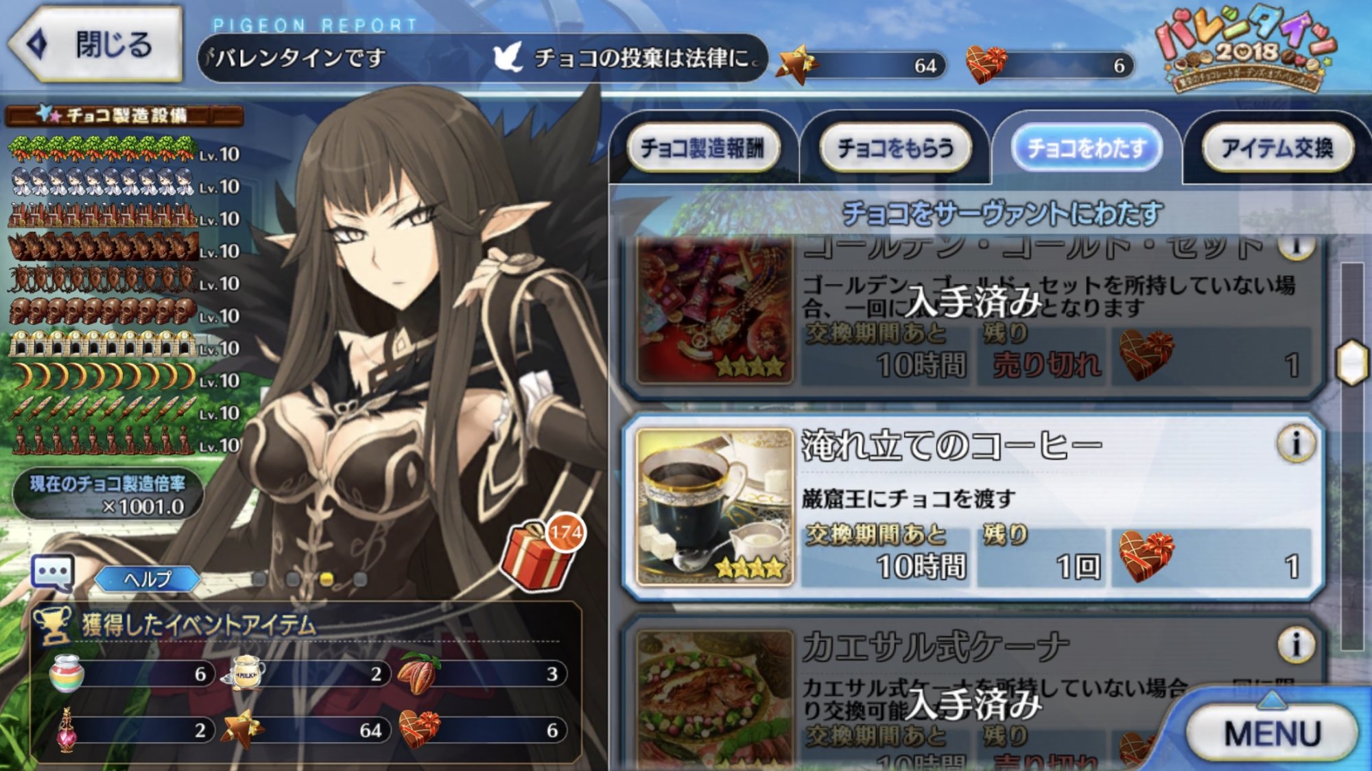 間もなくバレンタインイベの交換期限です