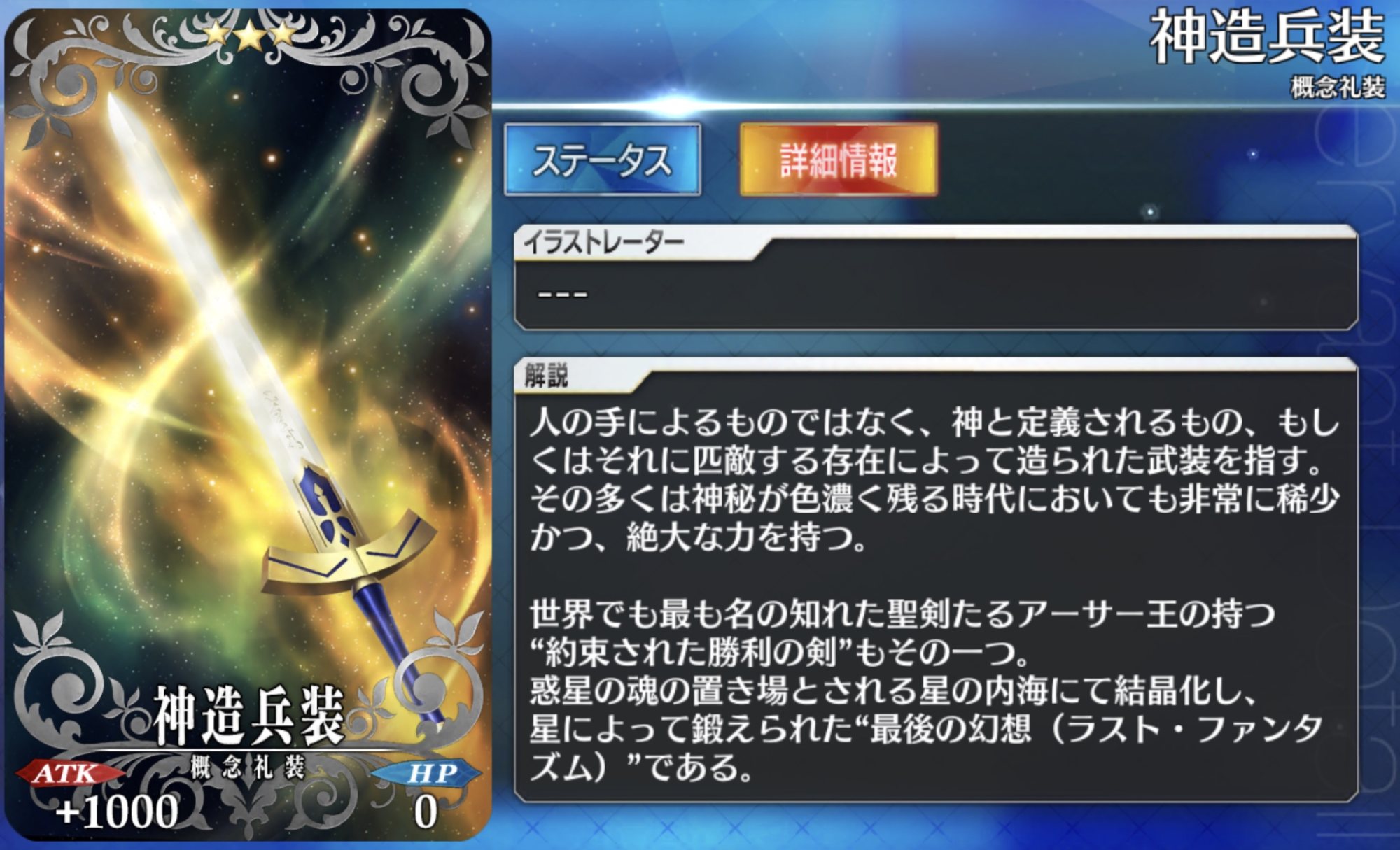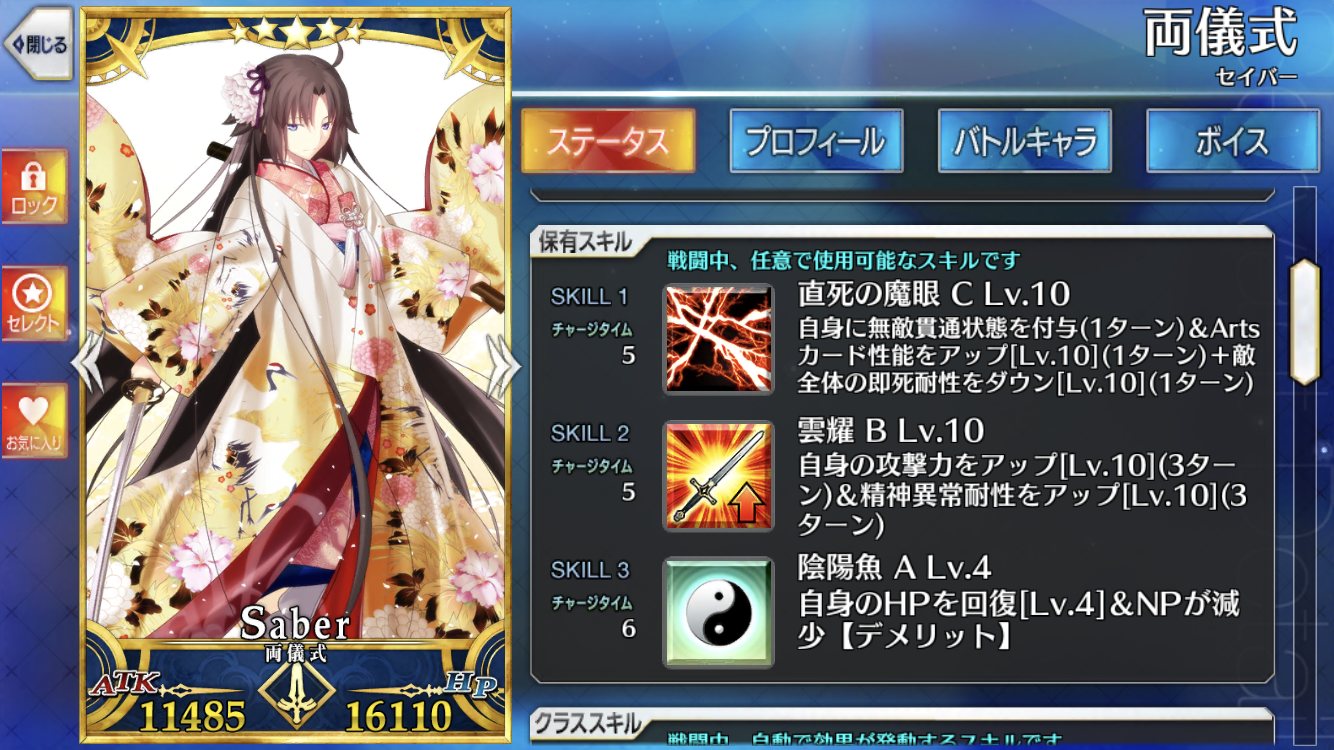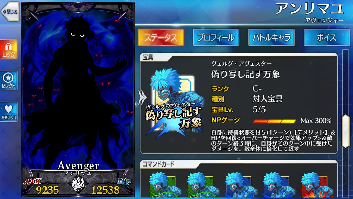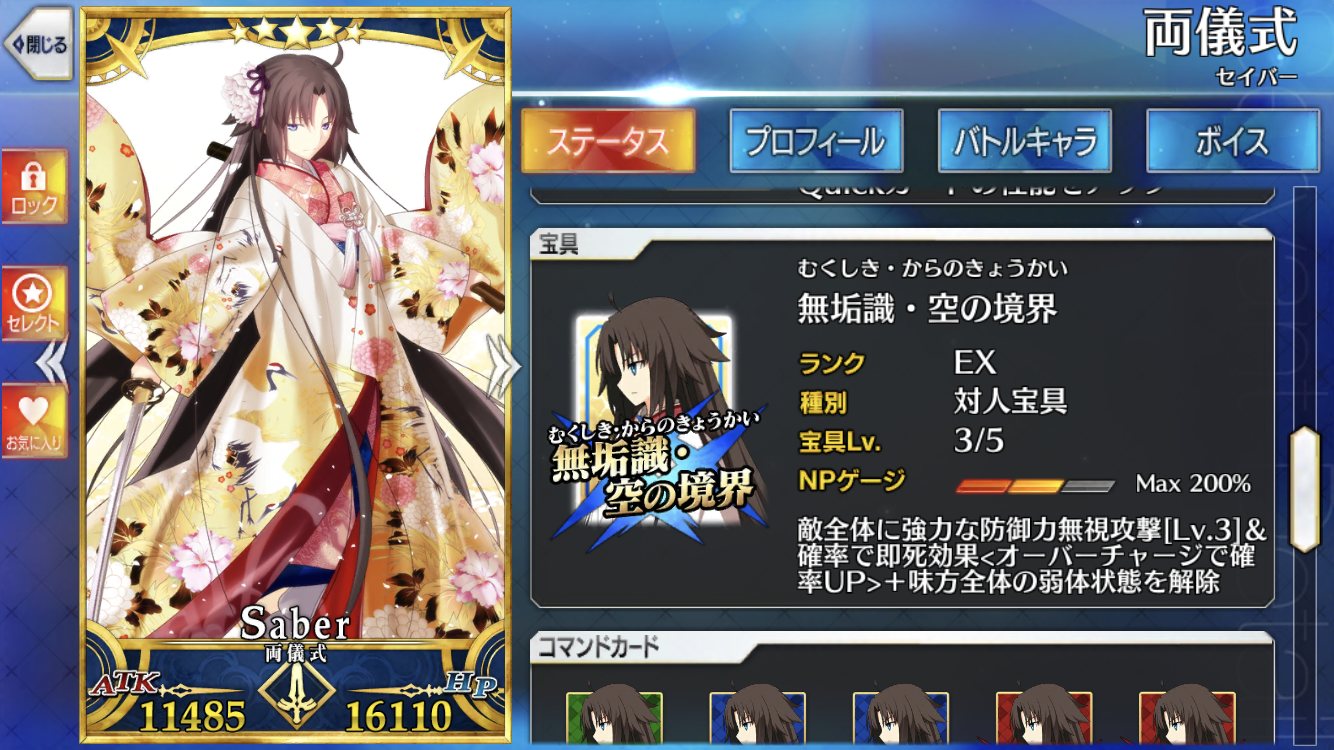この画像は俺が作ったコラで、ゲーム内だとゲージないから宝具はなかった。