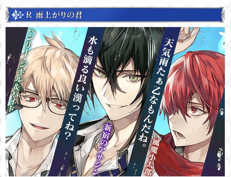 ひとつ、きよひーが「999本の薔薇の意味は『何度生まれ変わっても貴方を愛する』!?これこそ私がますたぁに伝えるに相応しい言葉!!」と張り切ってマスターのマイルームに送る薔薇を集めるも、999本とかすぐに集まるはずもなく途中で最初の頃の薔薇が痛んできて取り替えるのを繰り返し、中々集めきれずに困り顔になる。