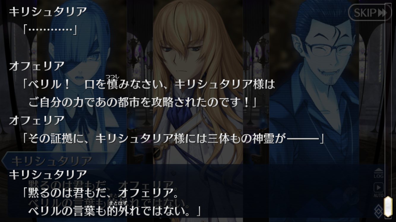 これは、第2章が楽しみですねえキリシュタリアさん個人的にめっちゃ好き。5章という立場で噛ませ扱いをされていたりしますが死ぬ時はオルタニキのようなもしくはレオのように綺麗にかっこよく散ることを期待してます。というか最後まで強敵なのを願っています