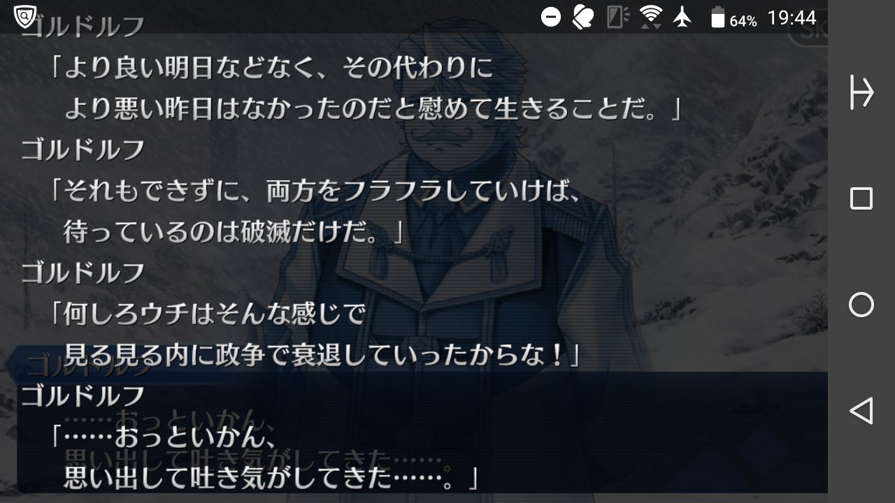 だから言うとおり、異聞帯円卓の前後で憎悪を乗り越えるイベントがあって、盾があるべか姿を取り戻す展開になる、ってとこまで俺の空想の根は落ちてる>>69