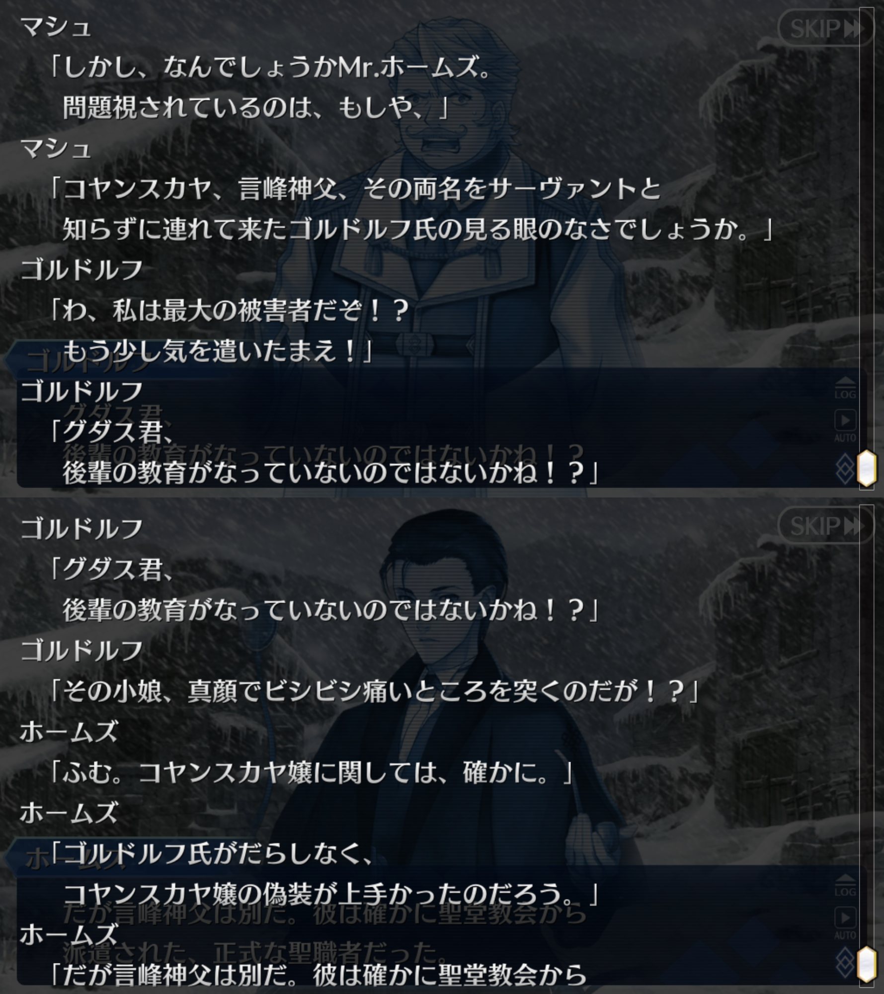 だとするとカドック陣営を退けても、また他の奴らが襲撃してきそうだな本当にカドック陣営なのかな。序章の最後にカドック全然出て来てないよね。アナスタシアと言峰と狐くらいしか出てないし、アナスタシアが動く理由も言峰が言うには皇帝のためみたいだしね。何かカドックはもうすでに亡くなっていて皇帝がカドックの身体を乗っ取ってるみたいな感じの方が話しが繋がりそう。それじゃなければ一回くらいはカドックが顔見せしても良いような。