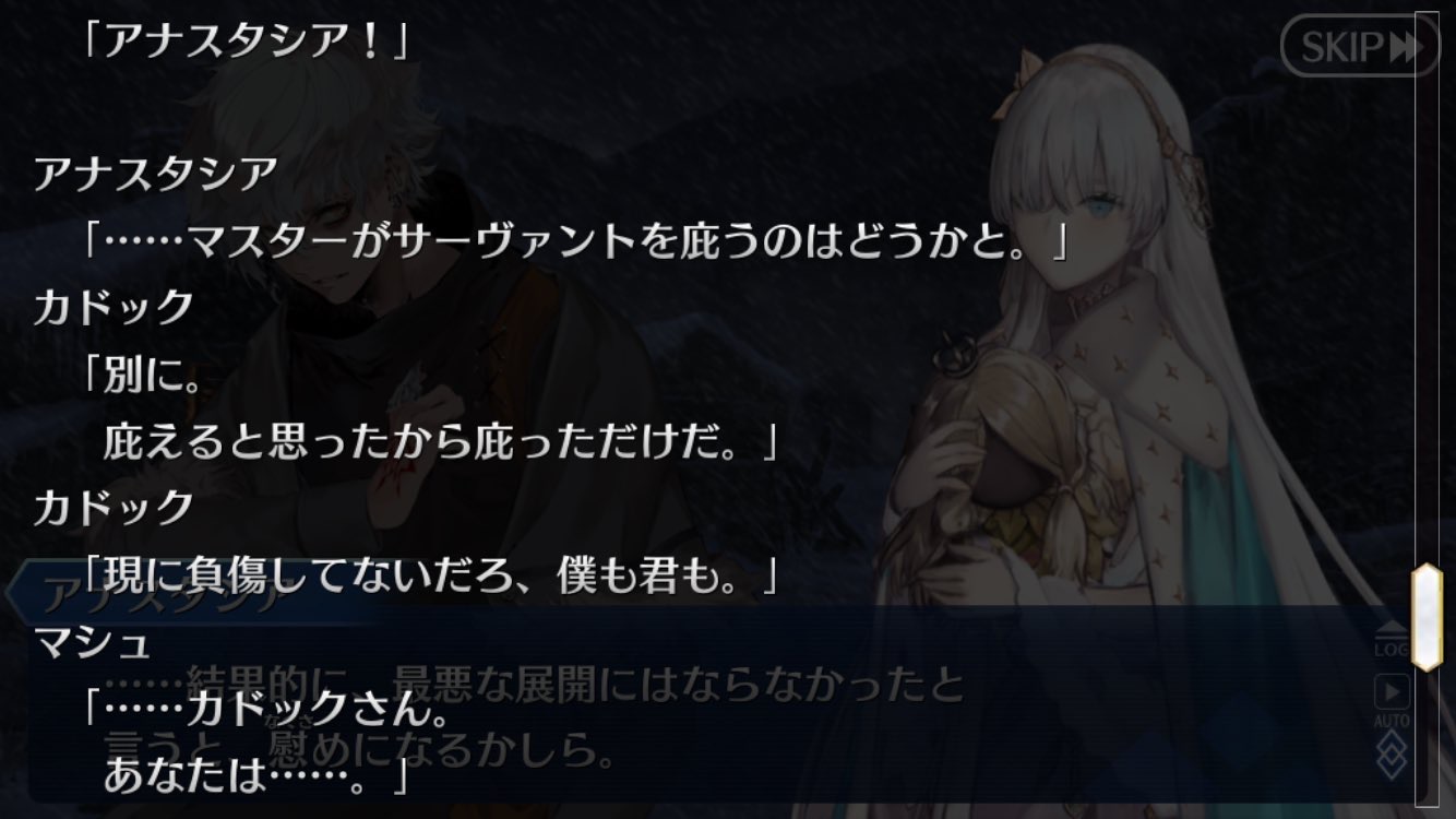色々とついた予想と同じか分からんけどカドックとアナスタシアの仲が良い場合カドックに気をつかって生死不明で留めてた展開はあるかもしないな