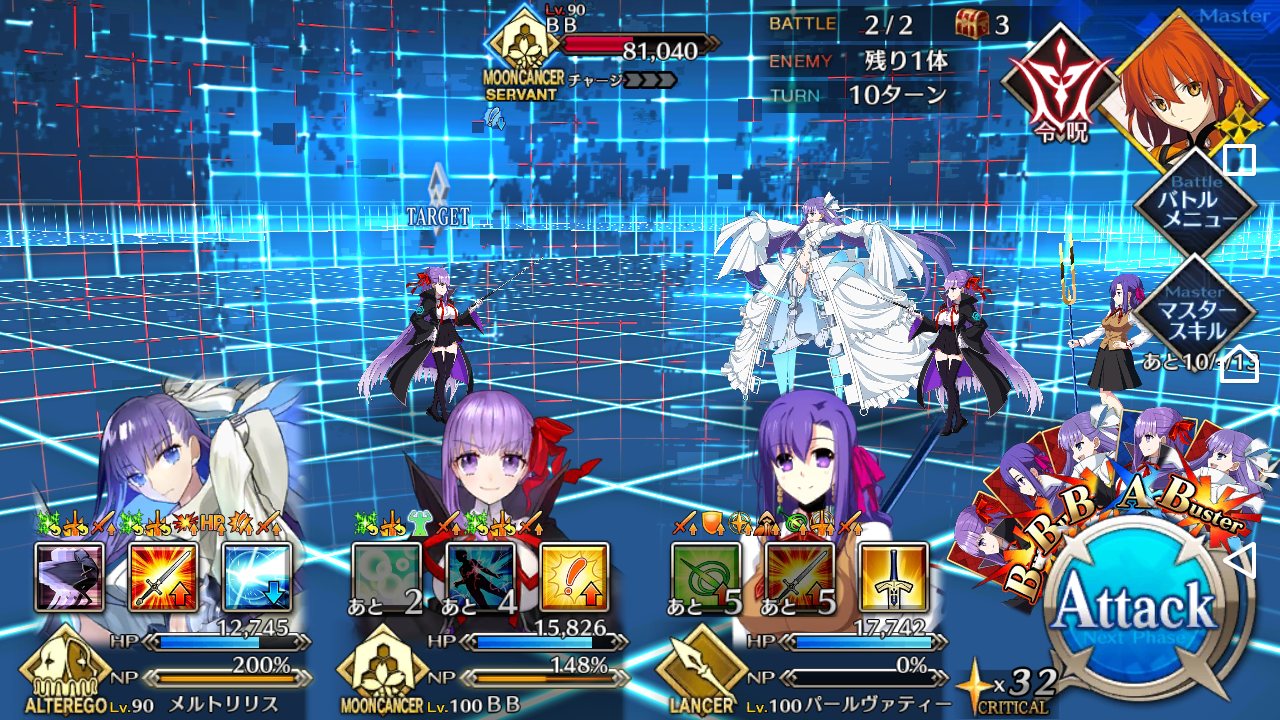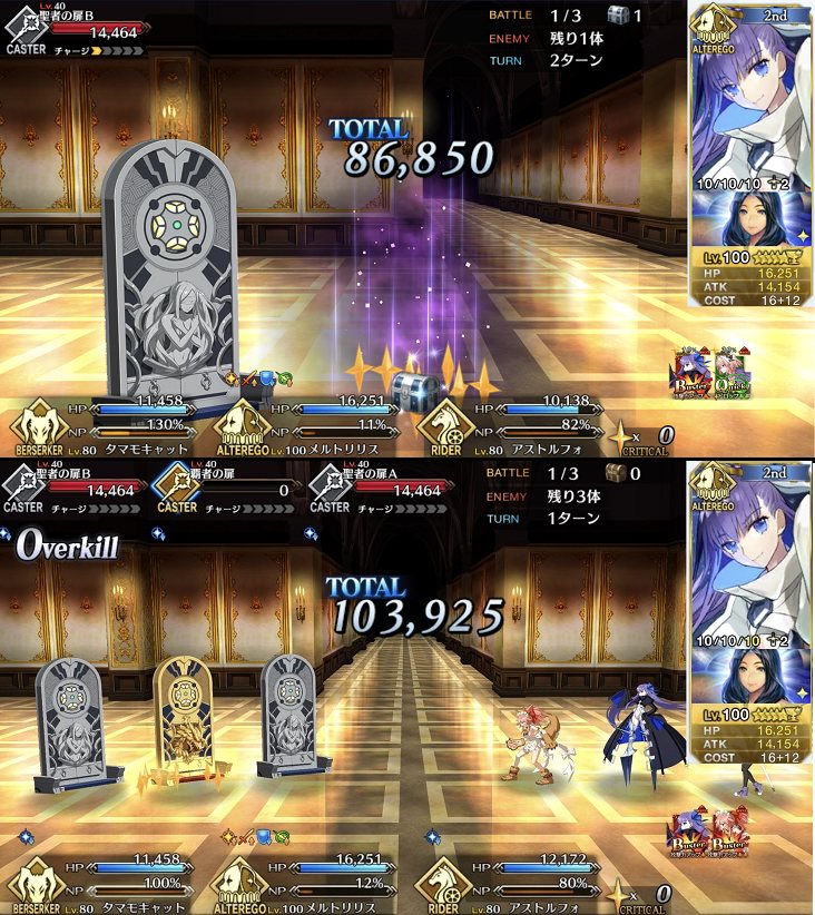 深読みのし過ぎは良くないね……大分いい強化もらったな~、メルトウィルス撒いたそのターンに宝具が撃てるのは素晴らしい、リップが隣にいれば死がふたりを分断つともをカタパルトにヴァージンレイザー・パラディオンの再現が出来るな!