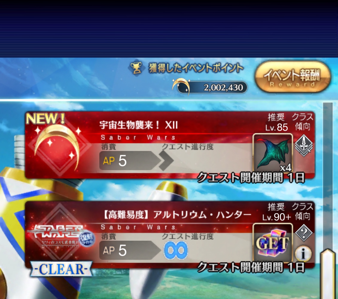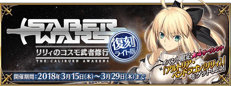 期間限定イベント「復刻:セイバーウォーズ ~リリィのコスモ武者修行~ ライト版」攻略・雑談スレ