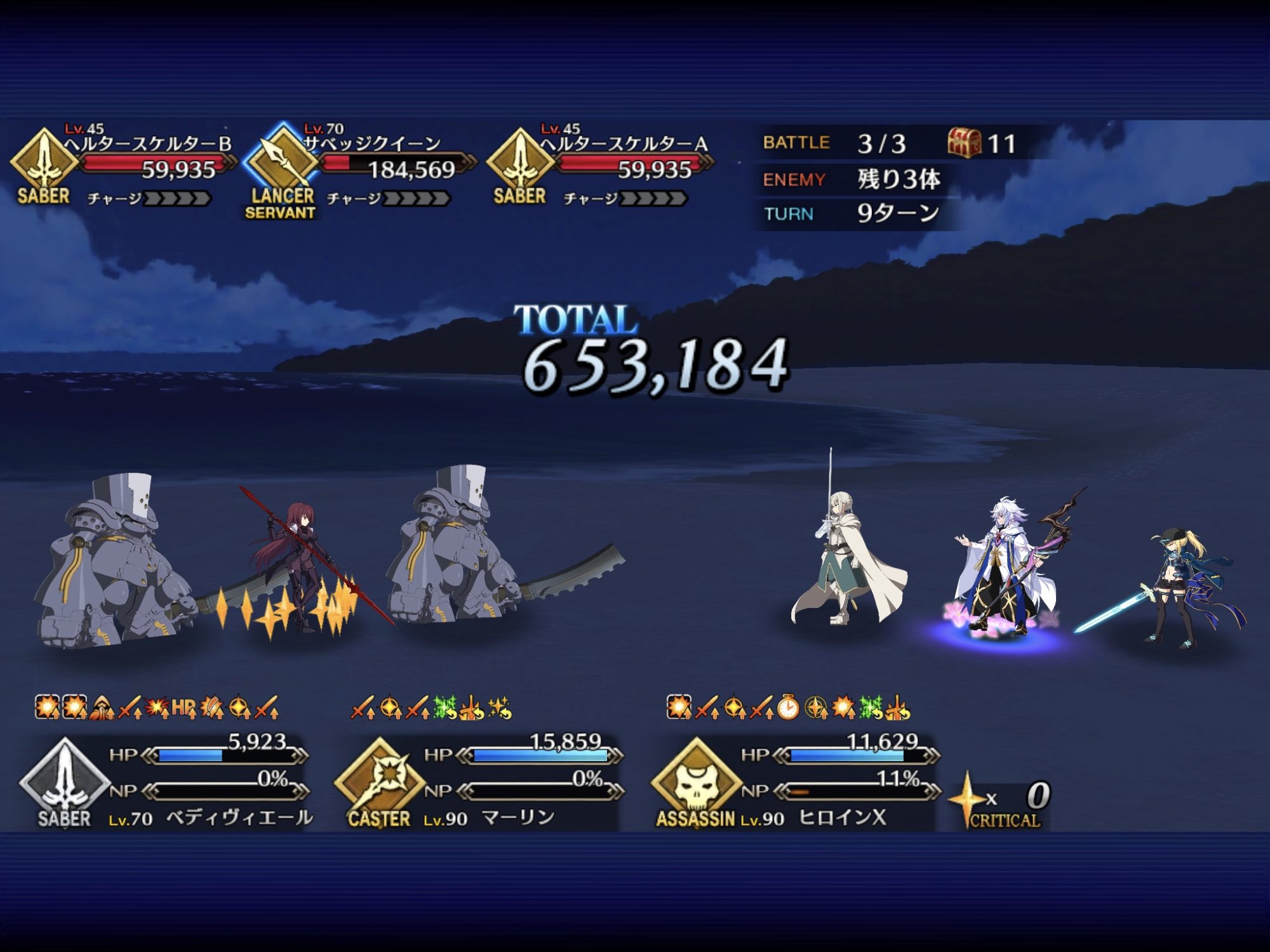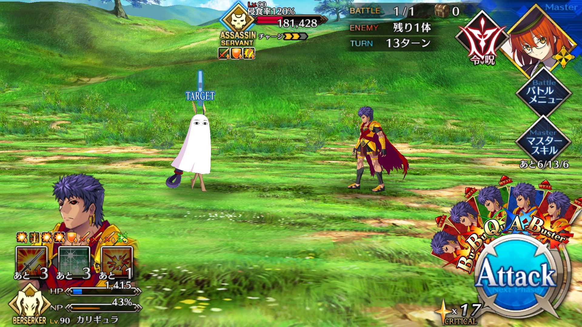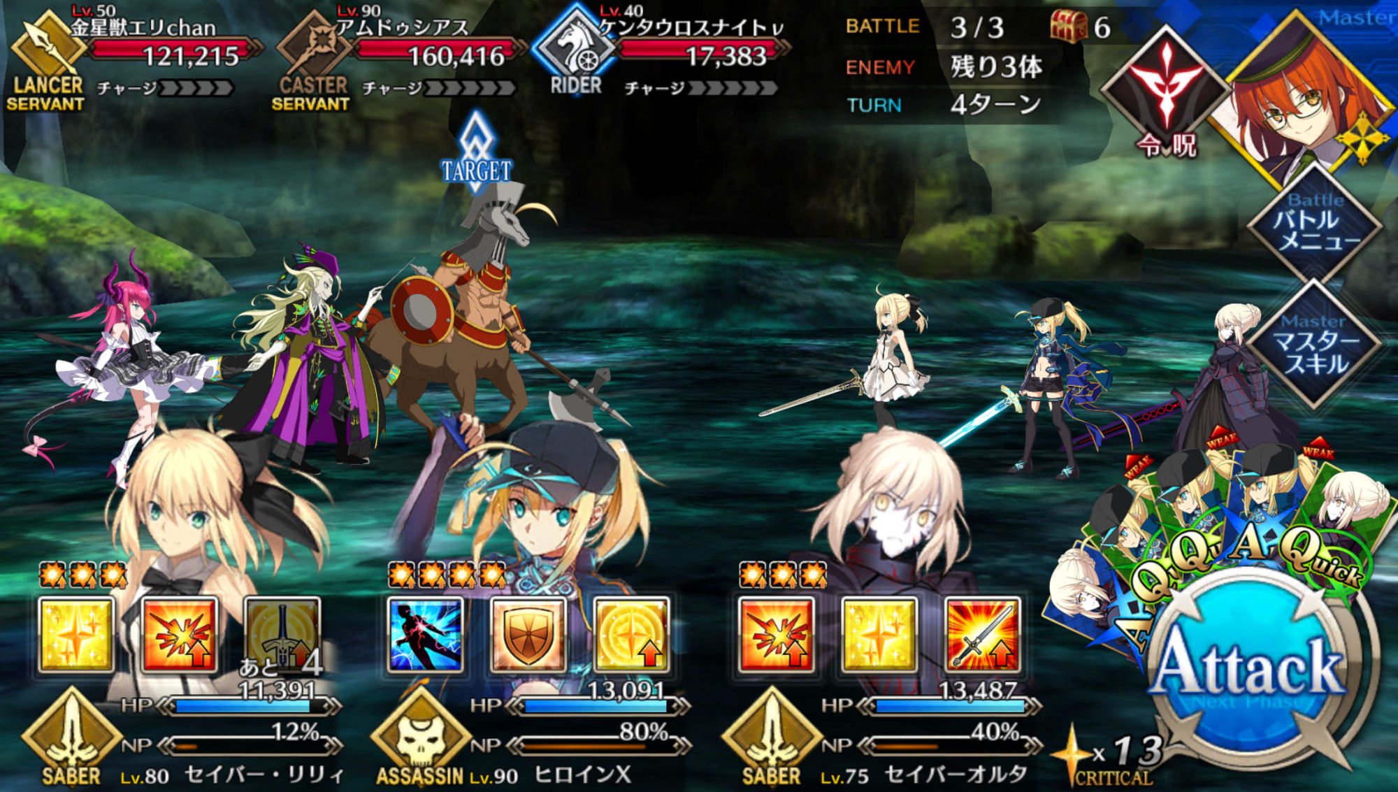 ①ダメージを与えすぎない程度に戦いつつ、ジークのNPをためる(ジークにガーデンオブアヴァロンのものと思われるバフが付いているため、すぐオダチェンはしていない)