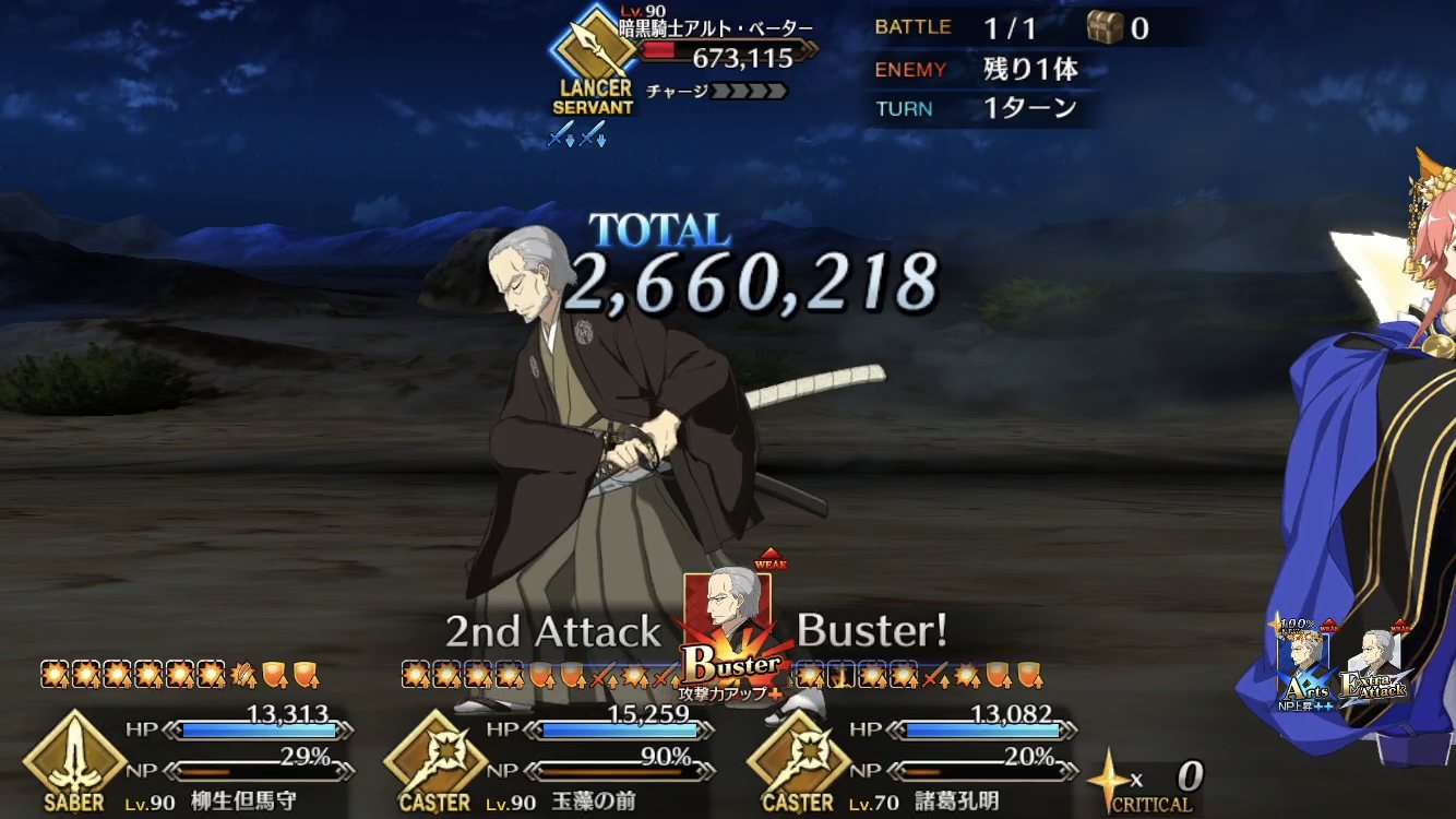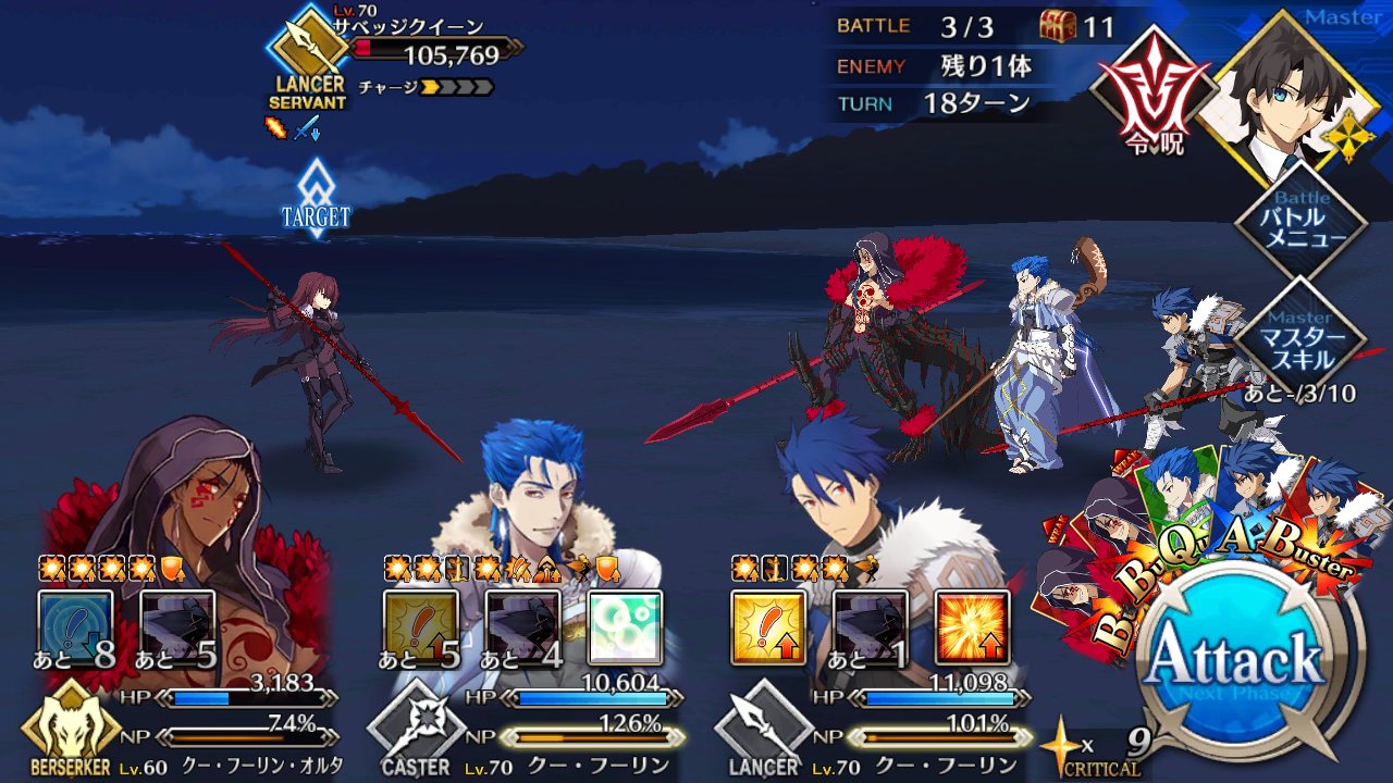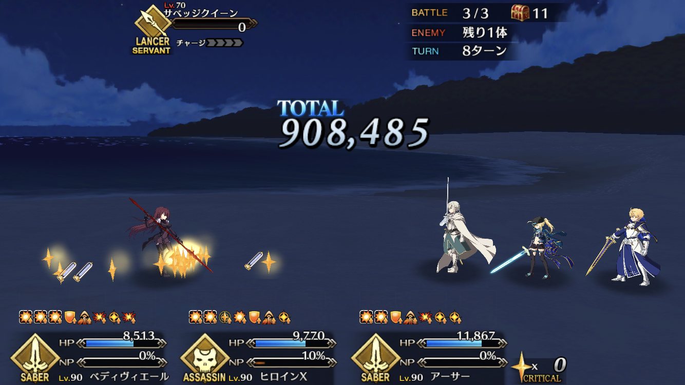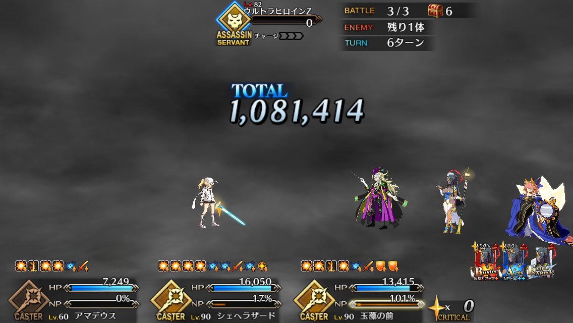 スクショは今日ボーナスクエストで奥義(宝具)使った直後のシーン。