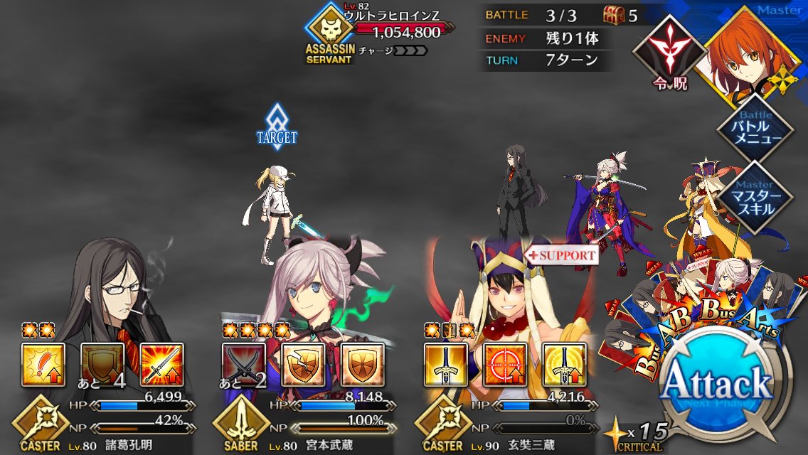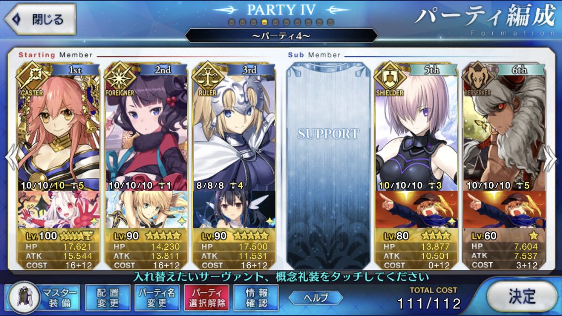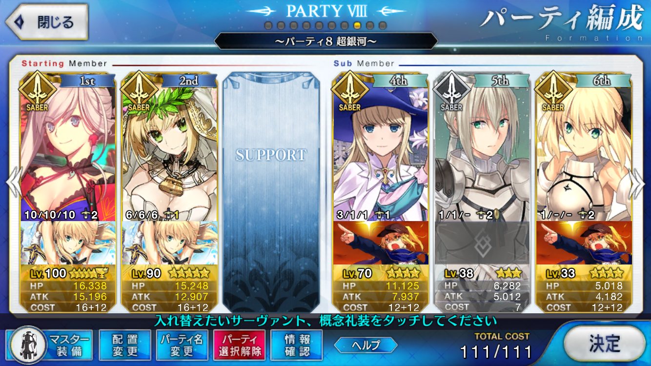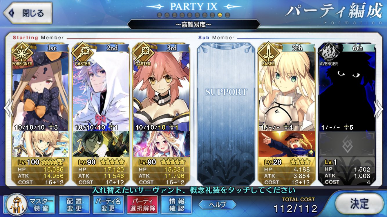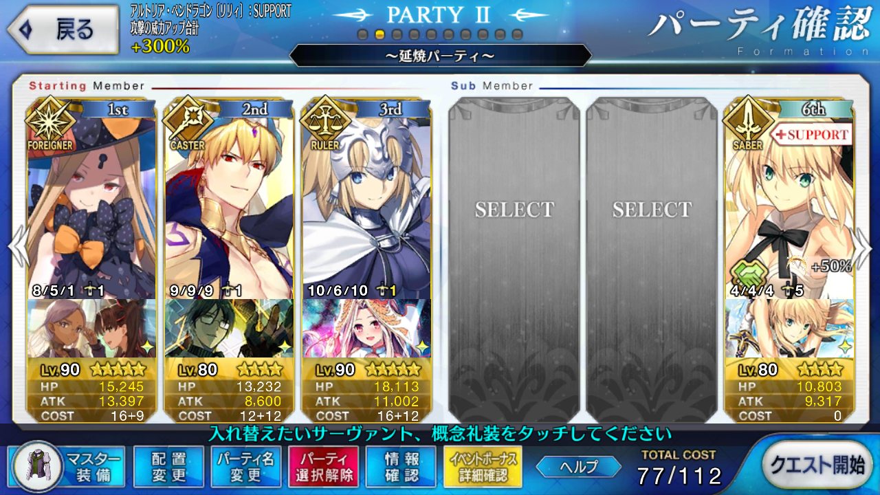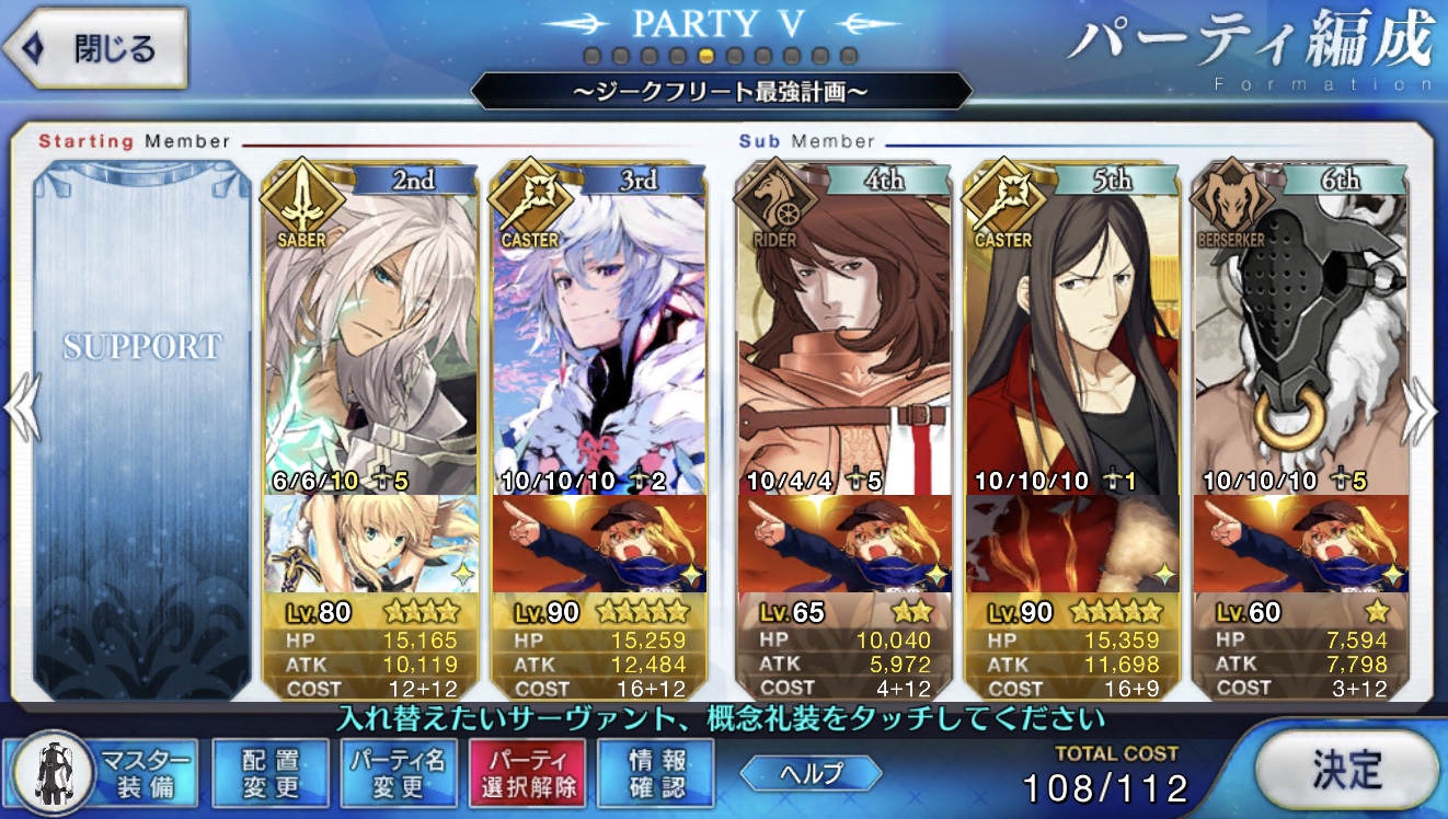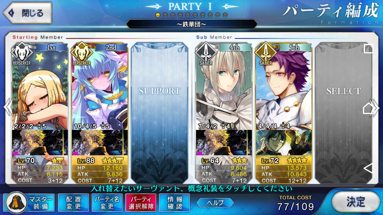 とりあえずアドバイス頂いた通り、ボーナス編成のセイバーは抜いてフレンドの孔明マーリン連れてこようと思います……