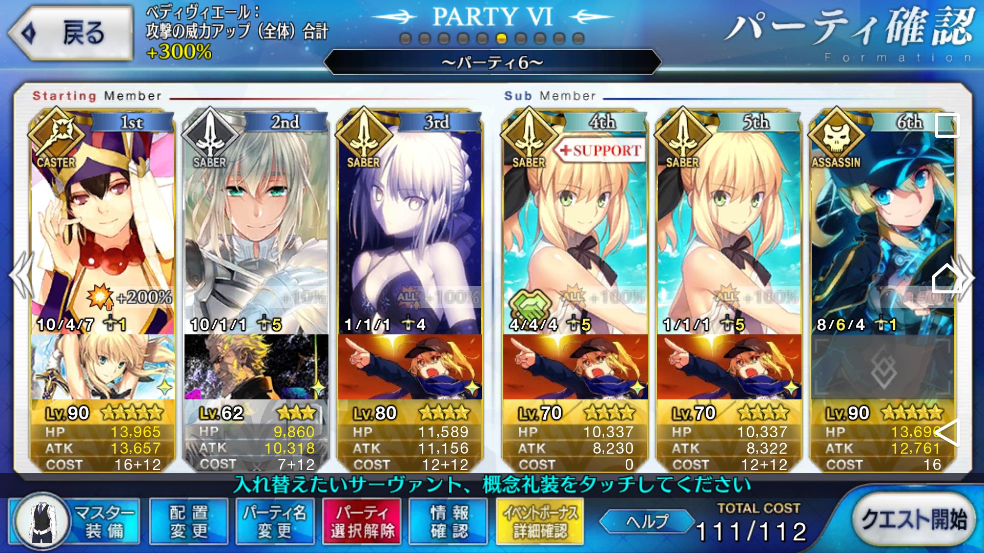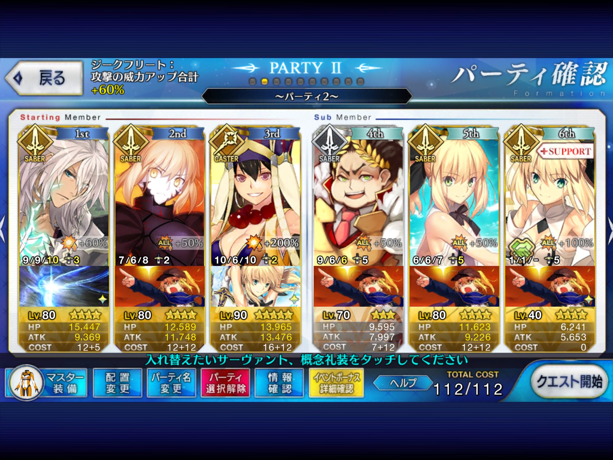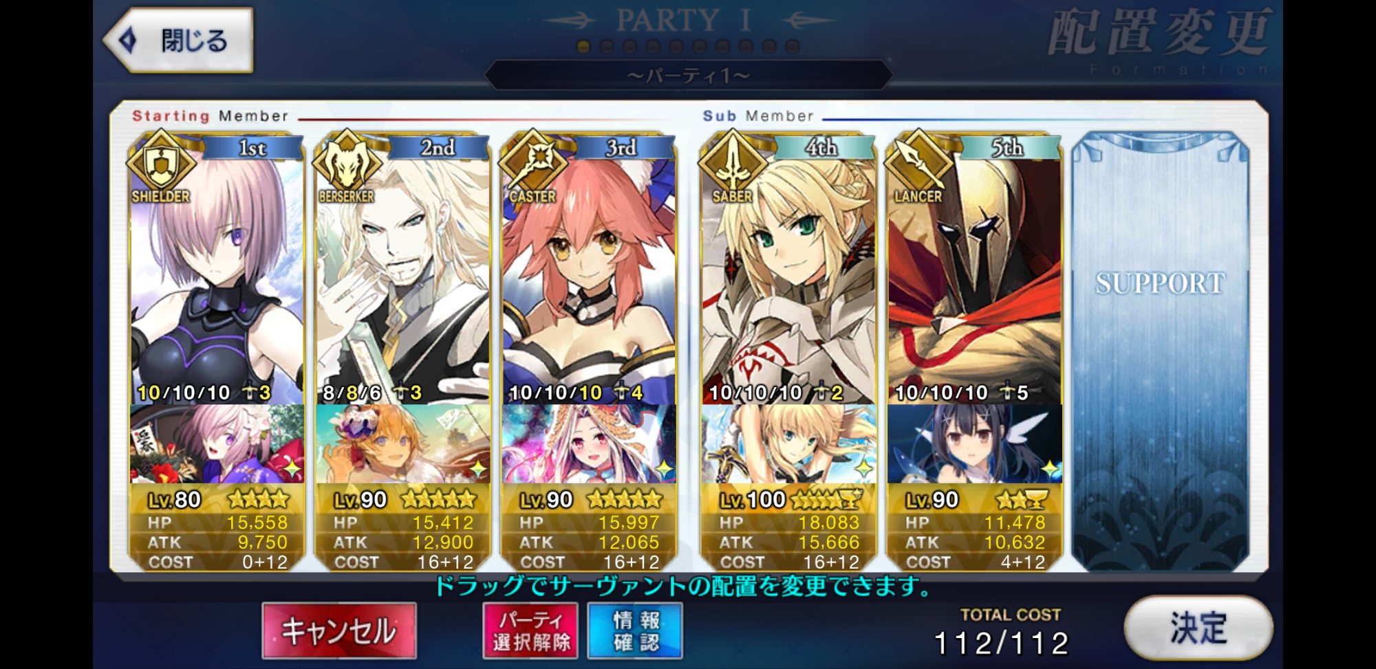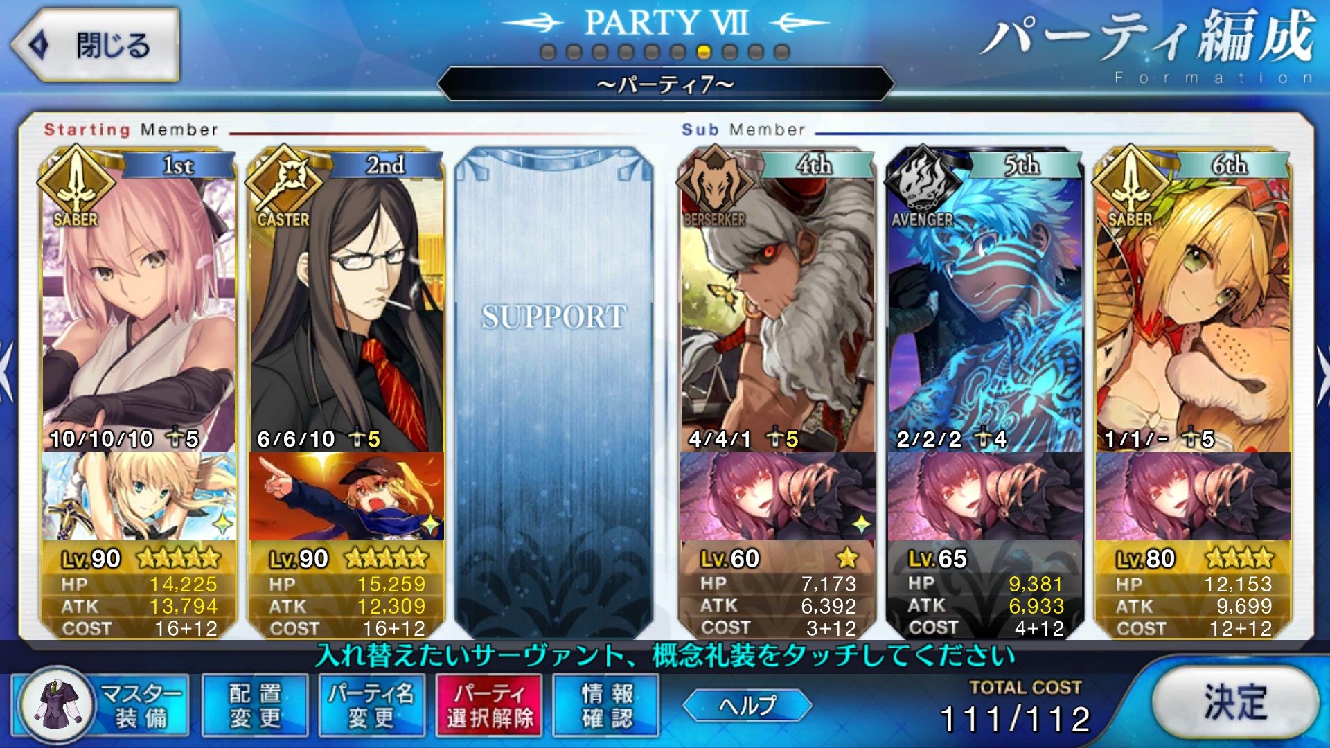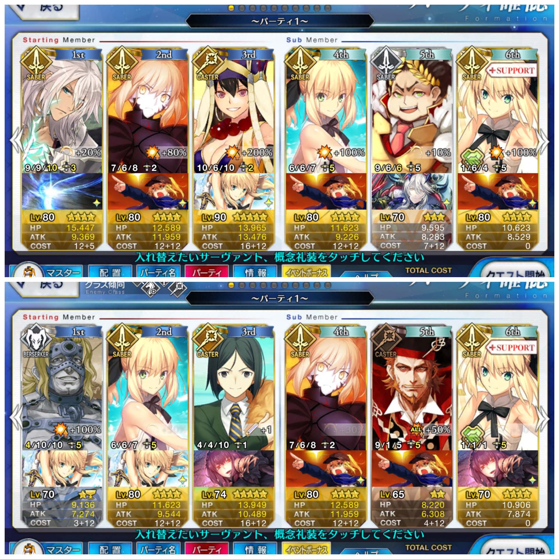 とりあえずアドバイス頂いた通り、ボーナス編成のセイバーは抜いてフレンドの孔明マーリン連れてこようと思います……