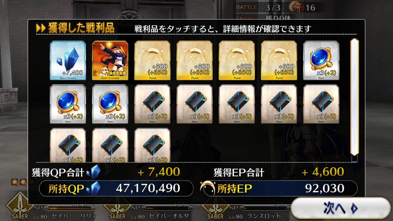 我がカルデアのMVPは剣ランスロとベディヴィエールだな。NPチャージ持ちは強い。