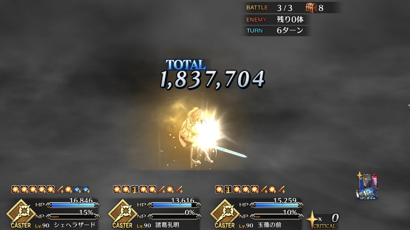 とまあここまで机上の仮説なんですが、1つ疑問なのが、特攻バフの数を見ると礼装がジークにブルーム、他全員星だと1つ足りない。