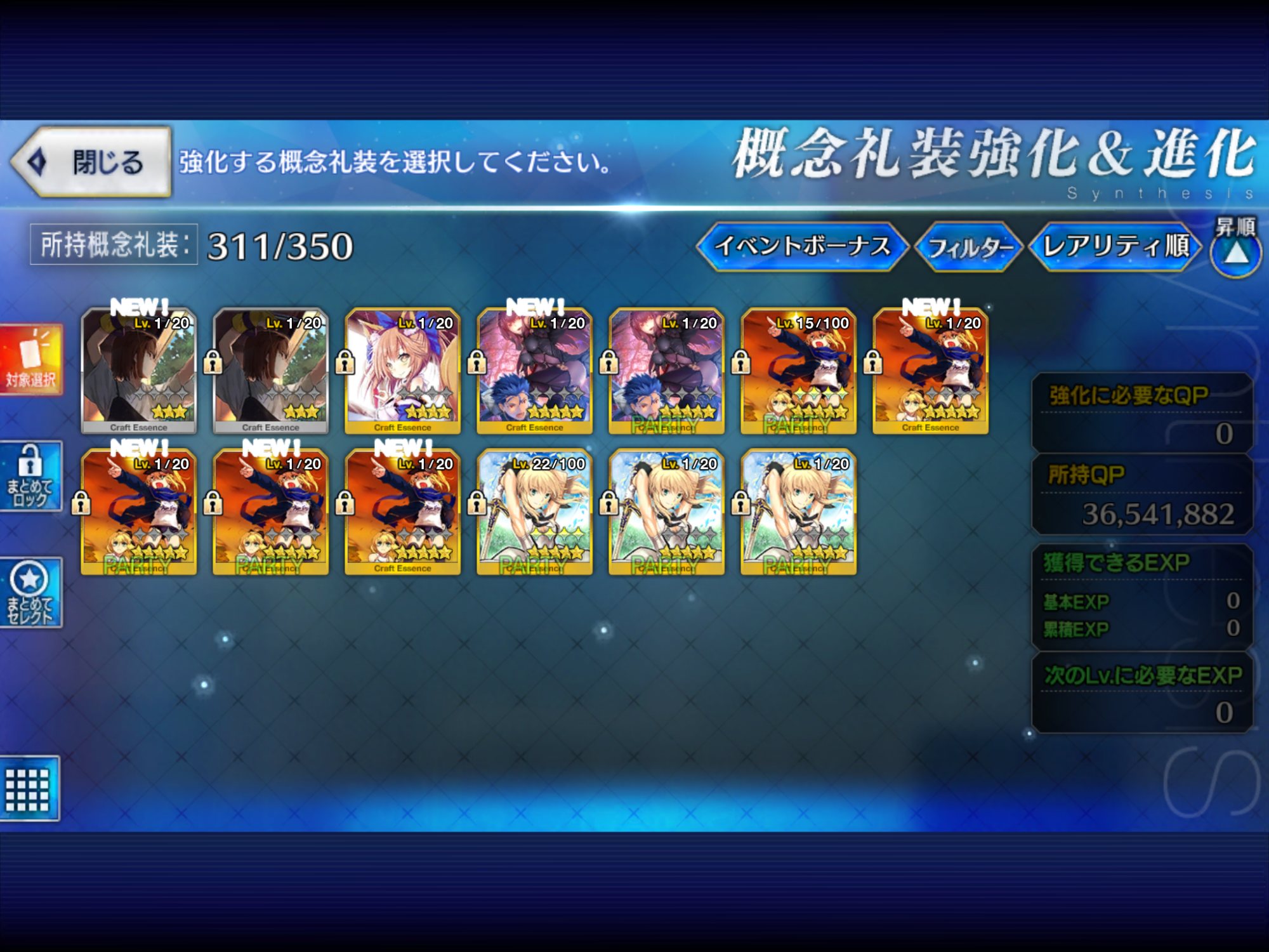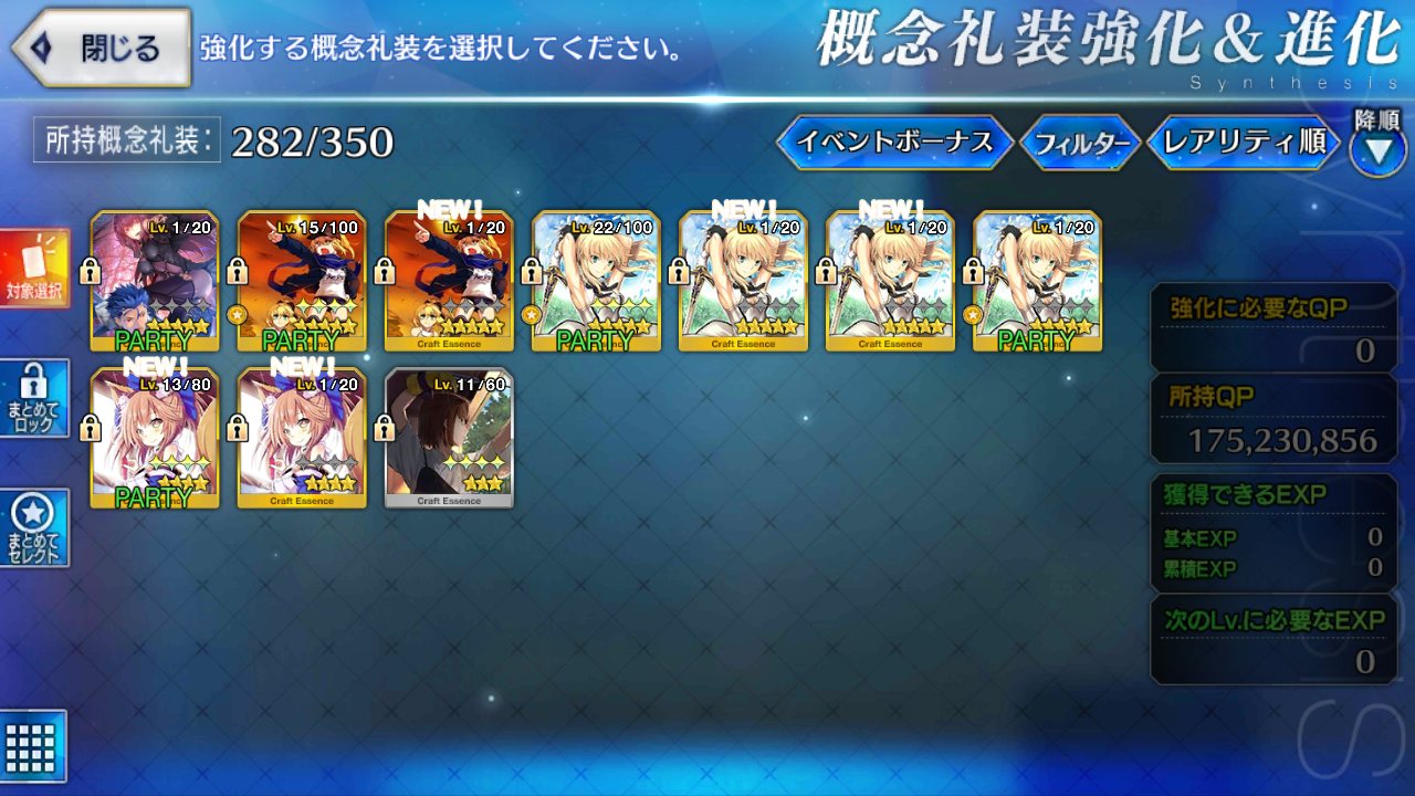 あのころはまだレベル上げたい礼装を手に入れられなかったのでうちのピュアリーは無駄にレベル40代だぜ。