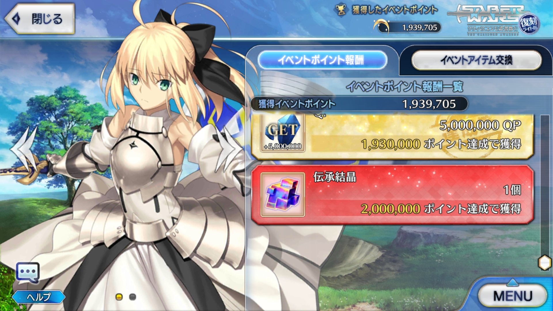 去年のバレンタインからはじめたから、SW復刻でセイバーリリィ配布ってきいてまず思ったのが