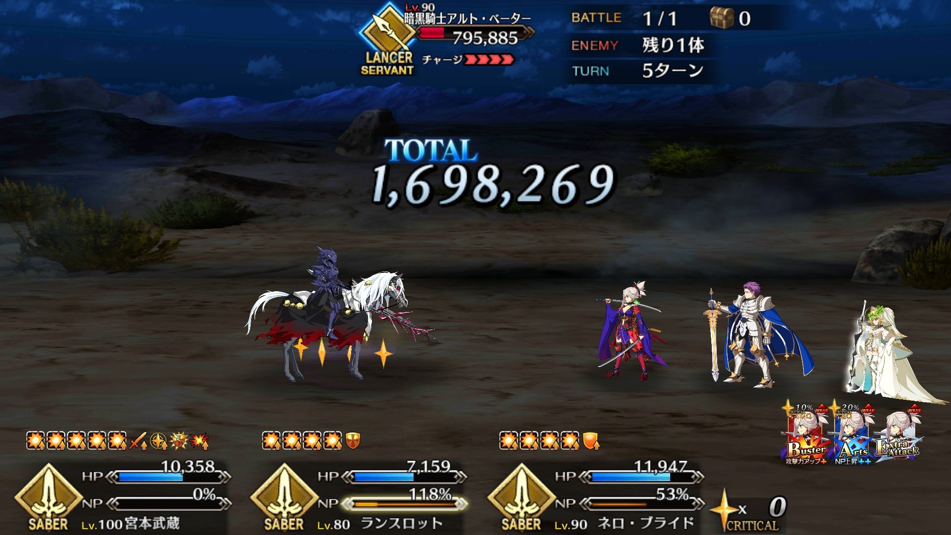この手持ちじゃ自慢にならんとは思いますが。モードレッドとランスロットの円卓勢が大活躍だった