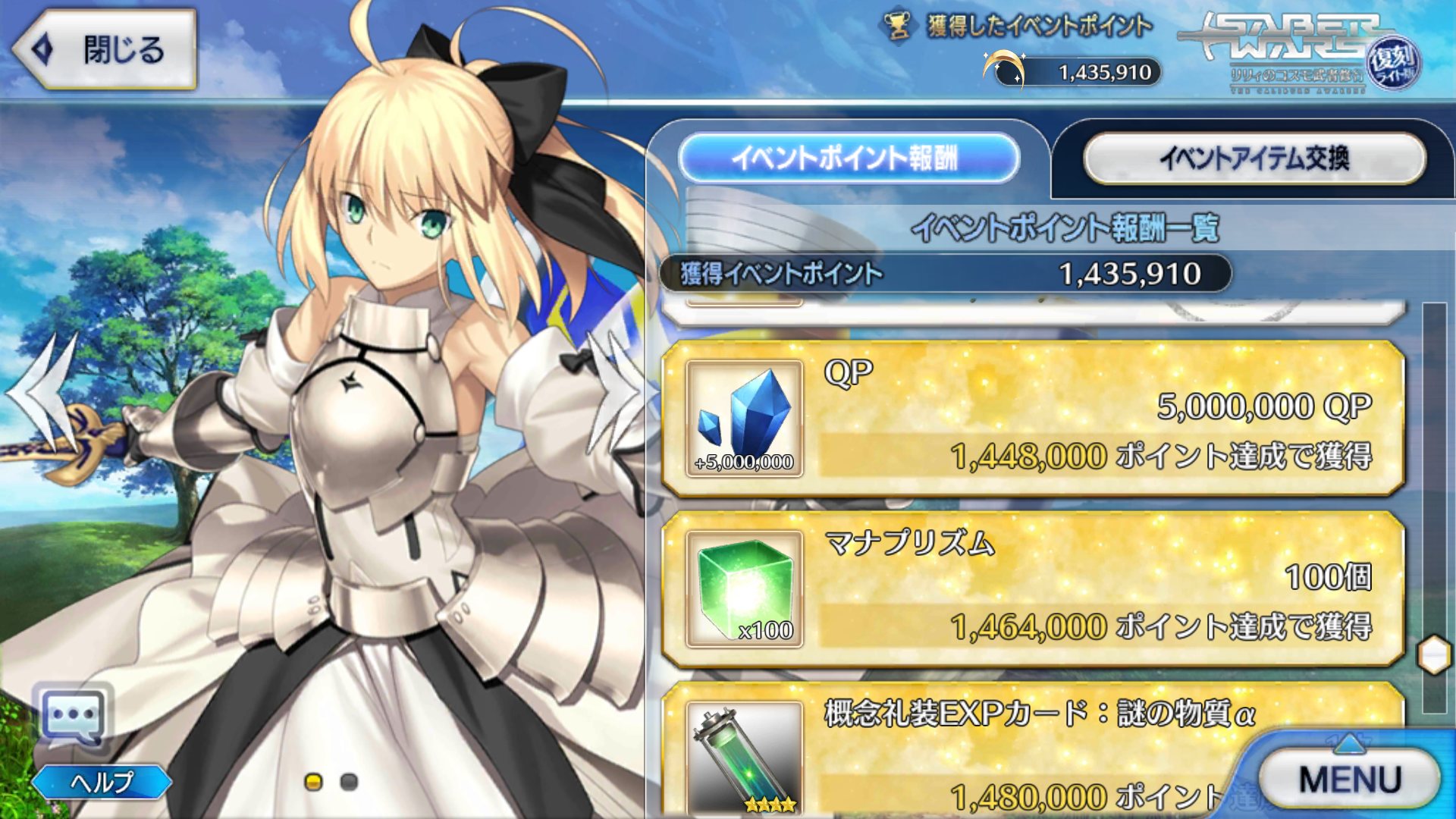 NPチャージは本当助かる今晩からいよいよセイバーウォーズ復刻ですね!むっちゃドキドキしてきた………