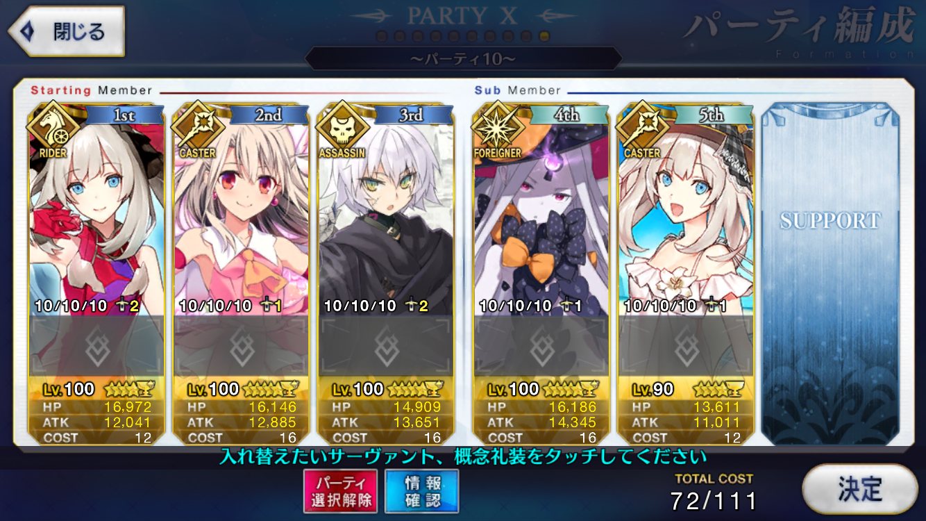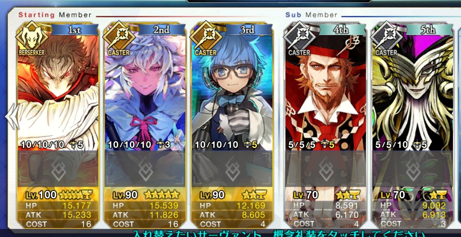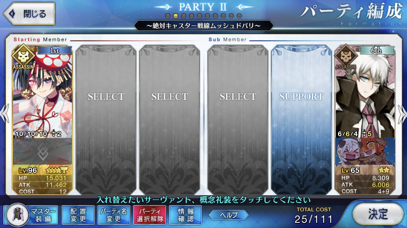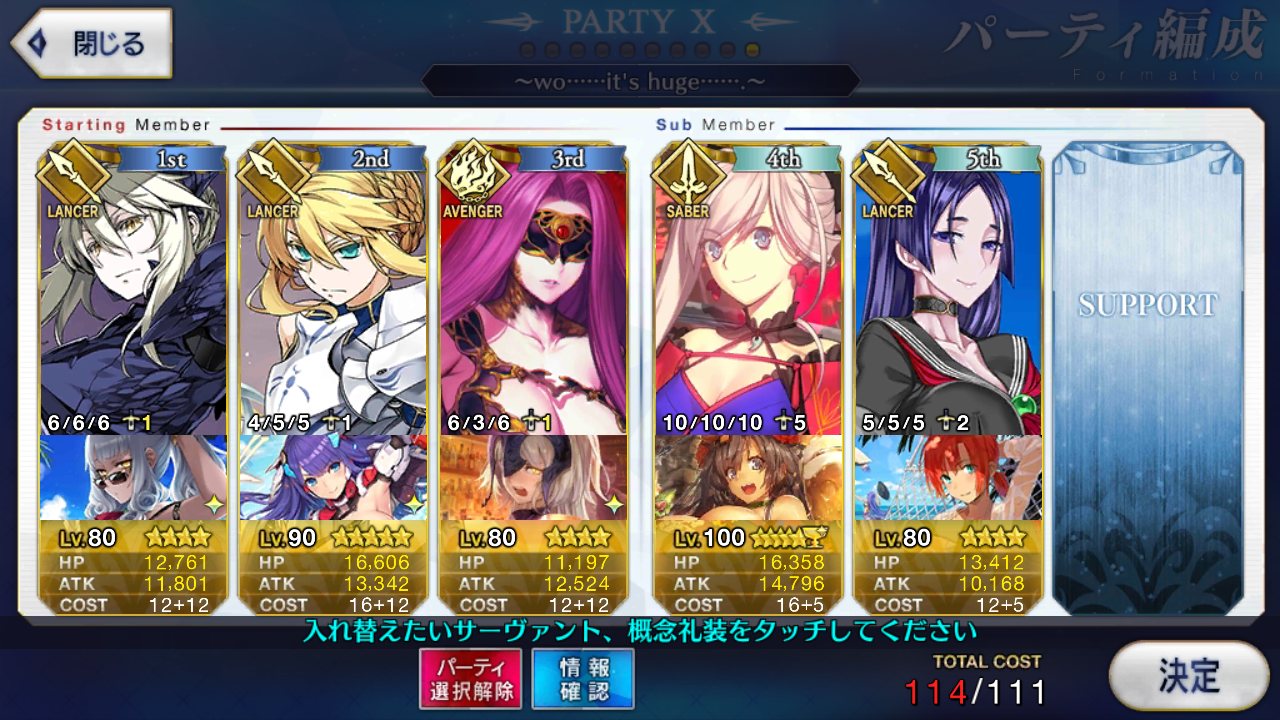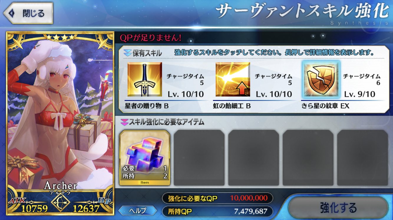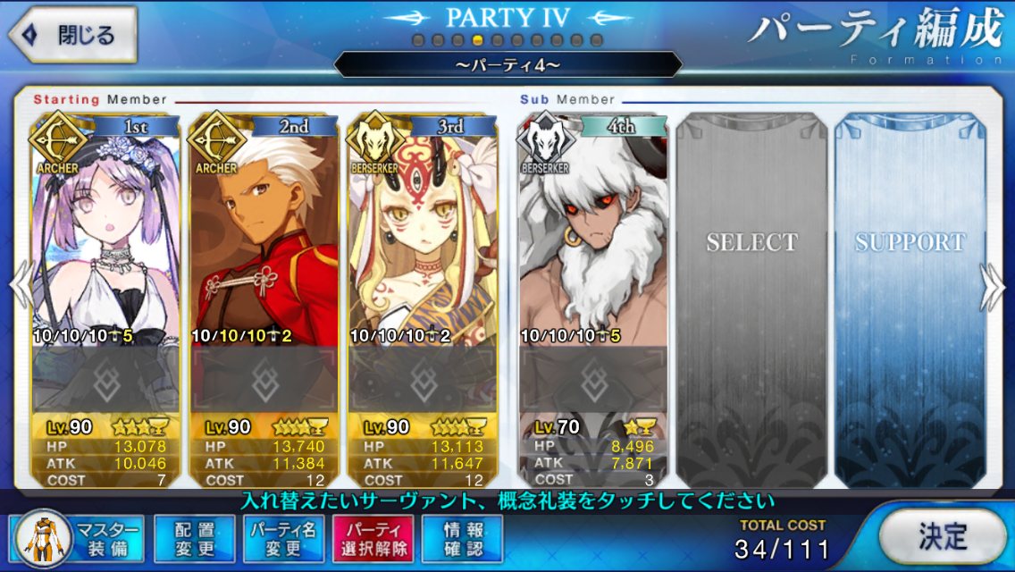 スキルはバスターアップ、攻撃アップ、与ダメプラスの3つでアタランテさんにそろそろ掛け合いボイスよこして