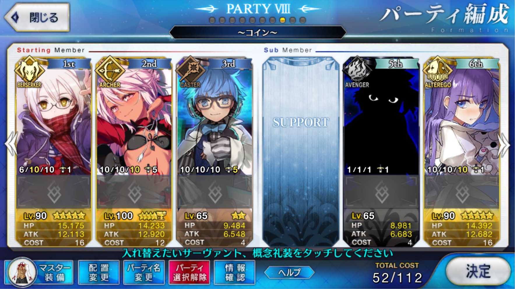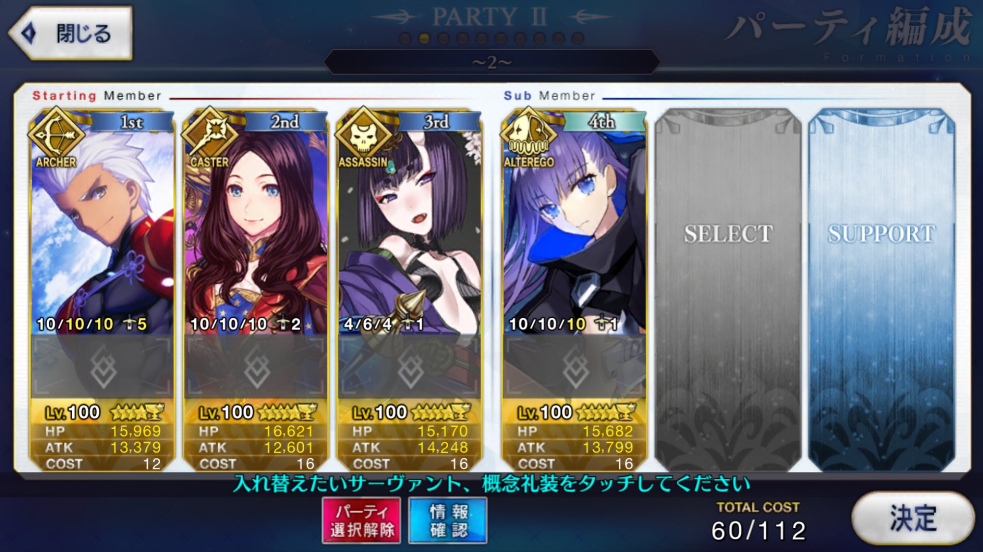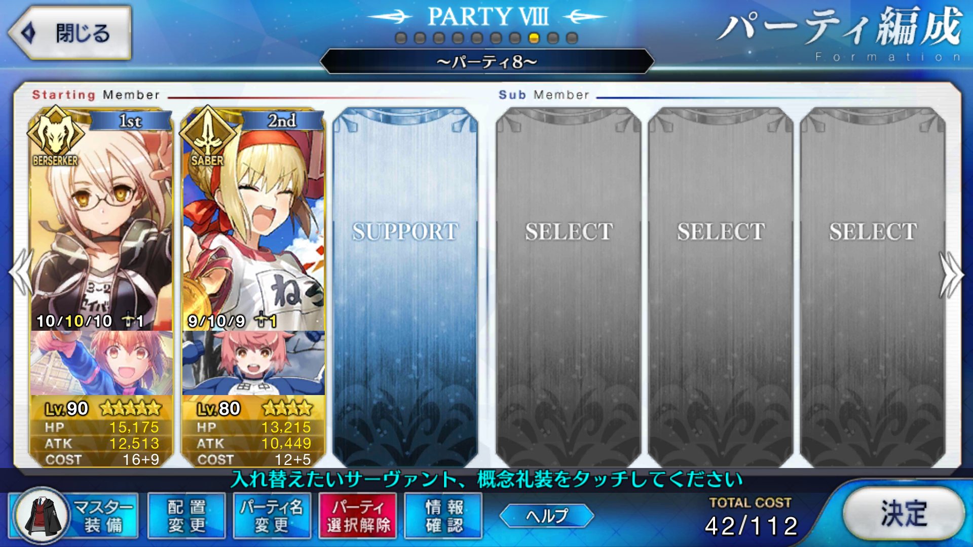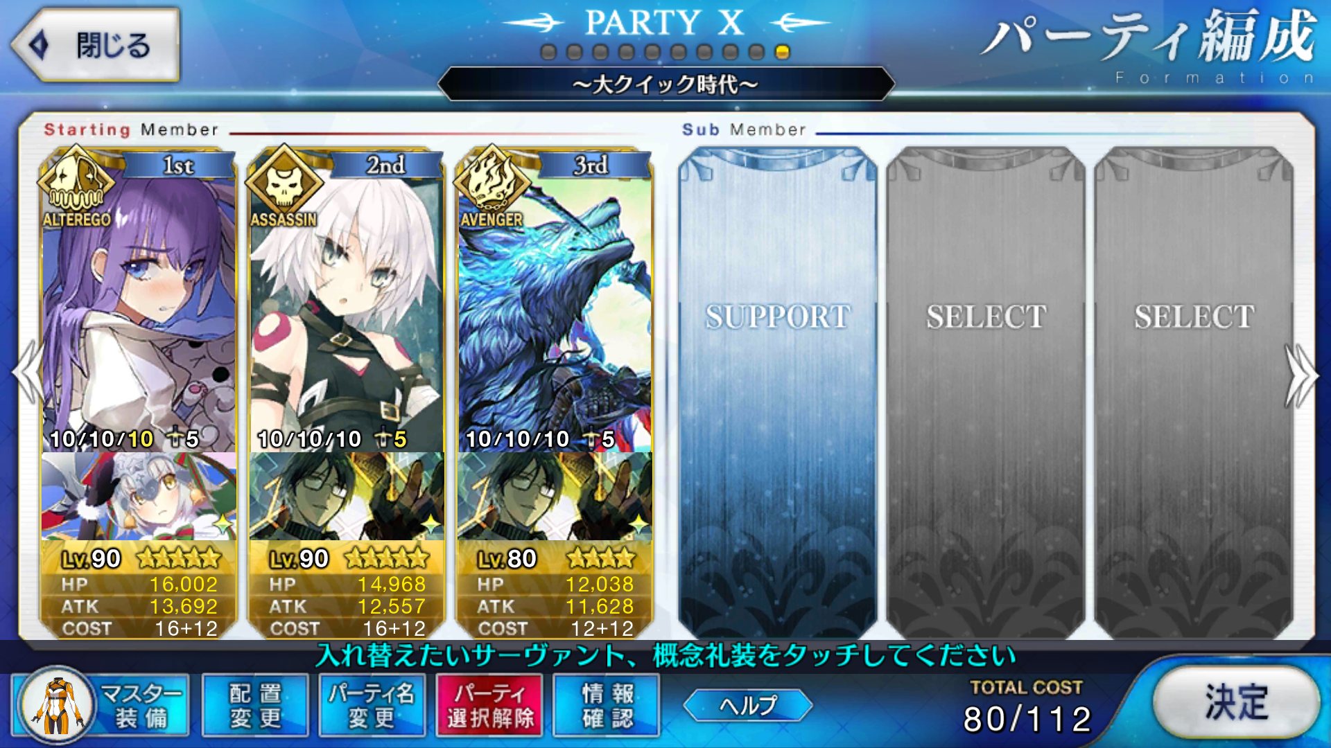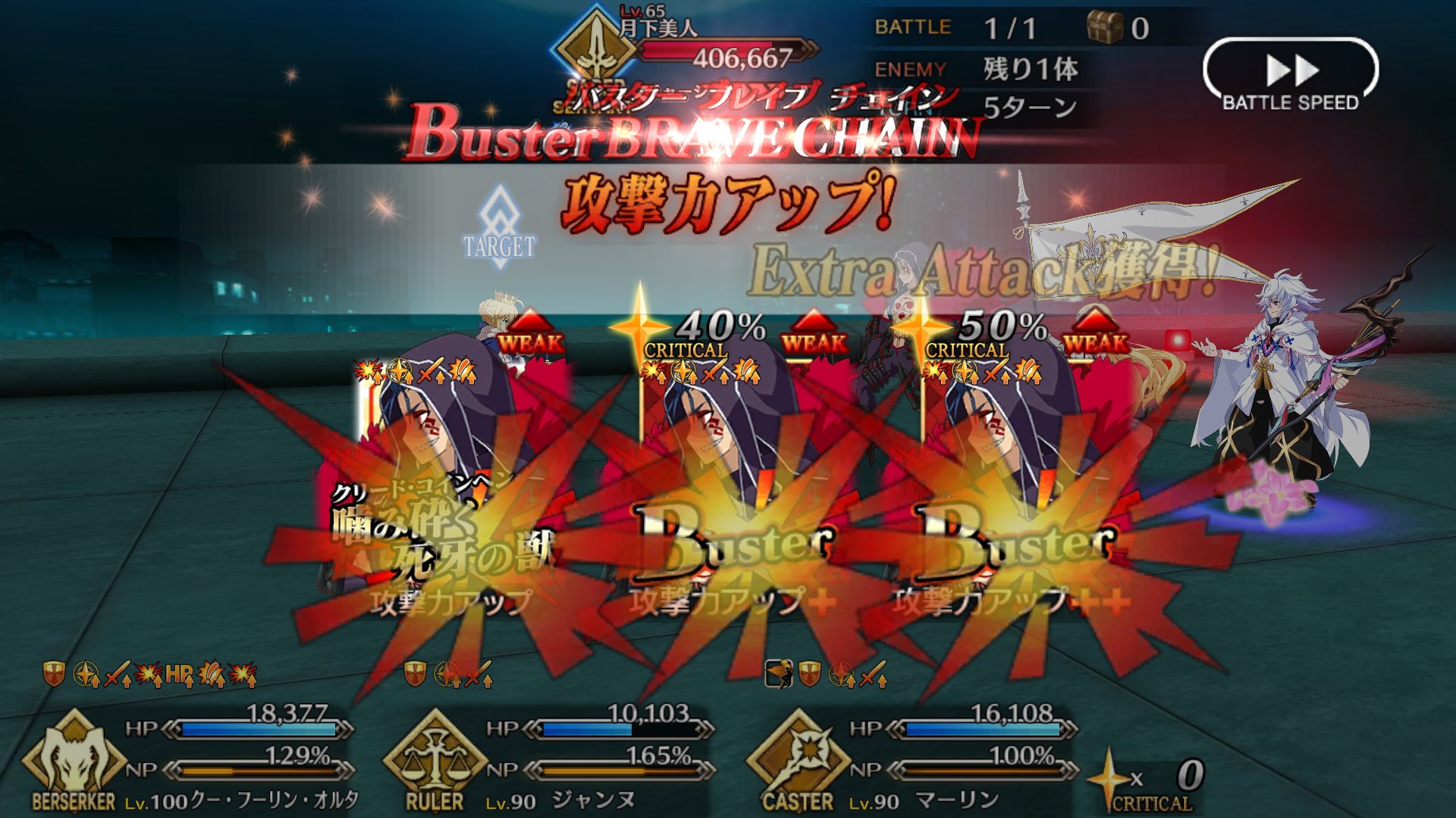 スキルはバスターアップ、攻撃アップ、与ダメプラスの3つでアタランテさんにそろそろ掛け合いボイスよこして