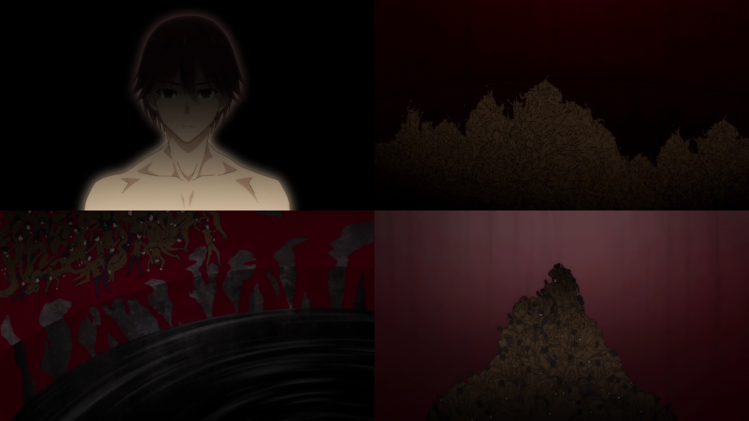ザビ子が負けて、チャクラヴァルティン初展開。その後の1000年の間にも、何人かは欠片男の前まで到達した人はいた? から、その度にヴァルティンの展開が重複されてあの形になった?ってことですかね?悪性情報の塊で、恨み憎しみ怒り哀しみでしかないハクノ