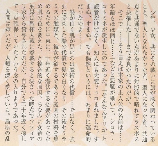 なんかさ、ああ、もう2人が巡り会う事はないんだなって思えて良い気がするのだわ。とりあえず経験値監修とかで帝都聖杯奇譚と欧州死徒戦線のノベライズはよはよ