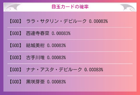 ピックアップの確率明記されてないから不明
