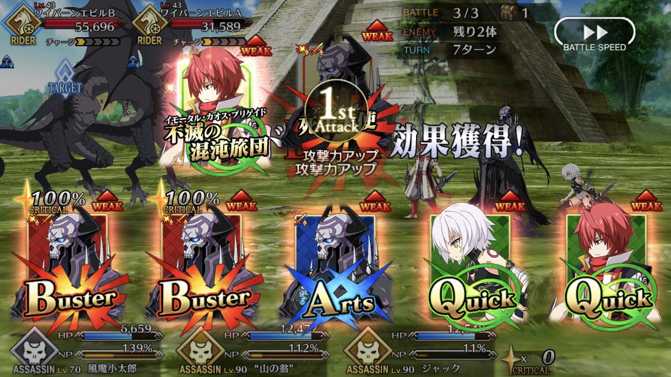 ガウェインに熱砂装備するとバスターnightからcritical nightへ進化して大変な事になるゾイ。>>17