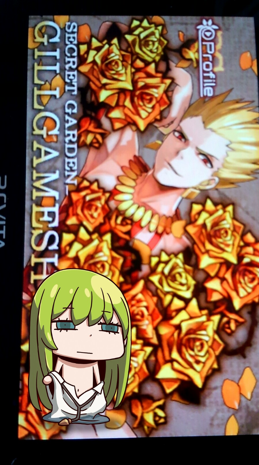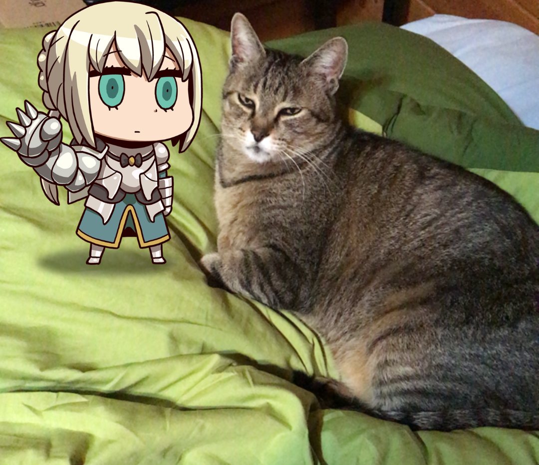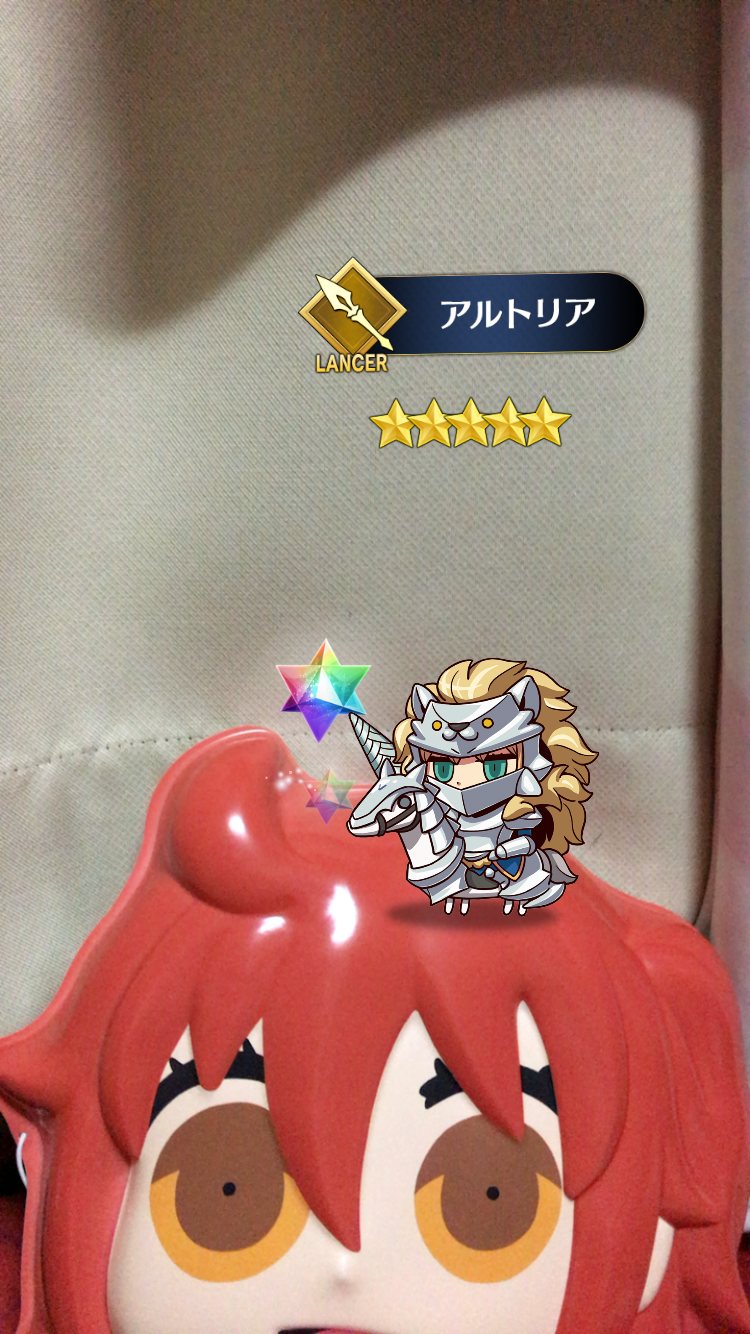 嘘、画像消えてる……牛若丸手に乗っけてた画像消えてる。マーリンはフォウくんに蹴られてる絵だったからトイレの便座で撮ったやつもあったなぁ